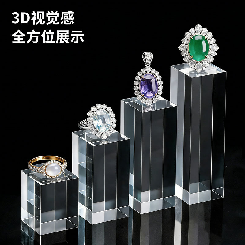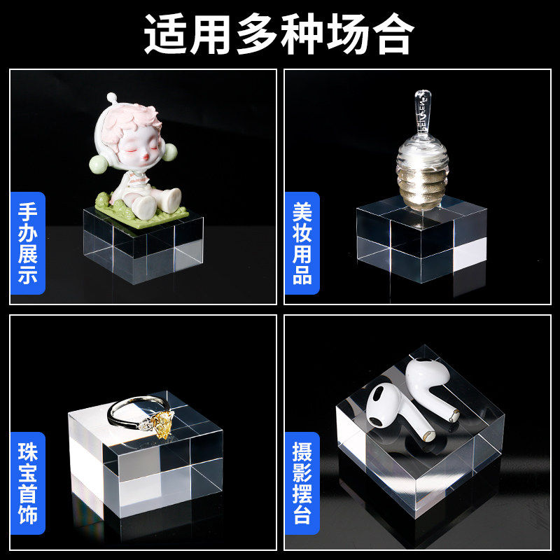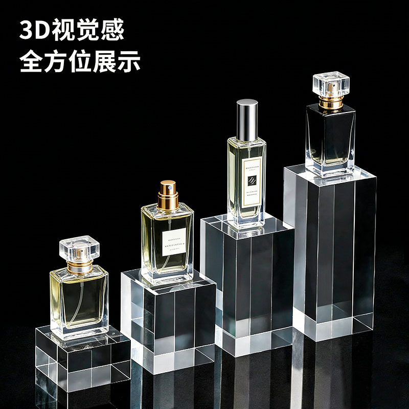 高透明亚克力方柱水晶方块底座托化妆品展示台高档珠宝手办饰品香水印章道具柜台陈列展示架有机玻璃支持定制