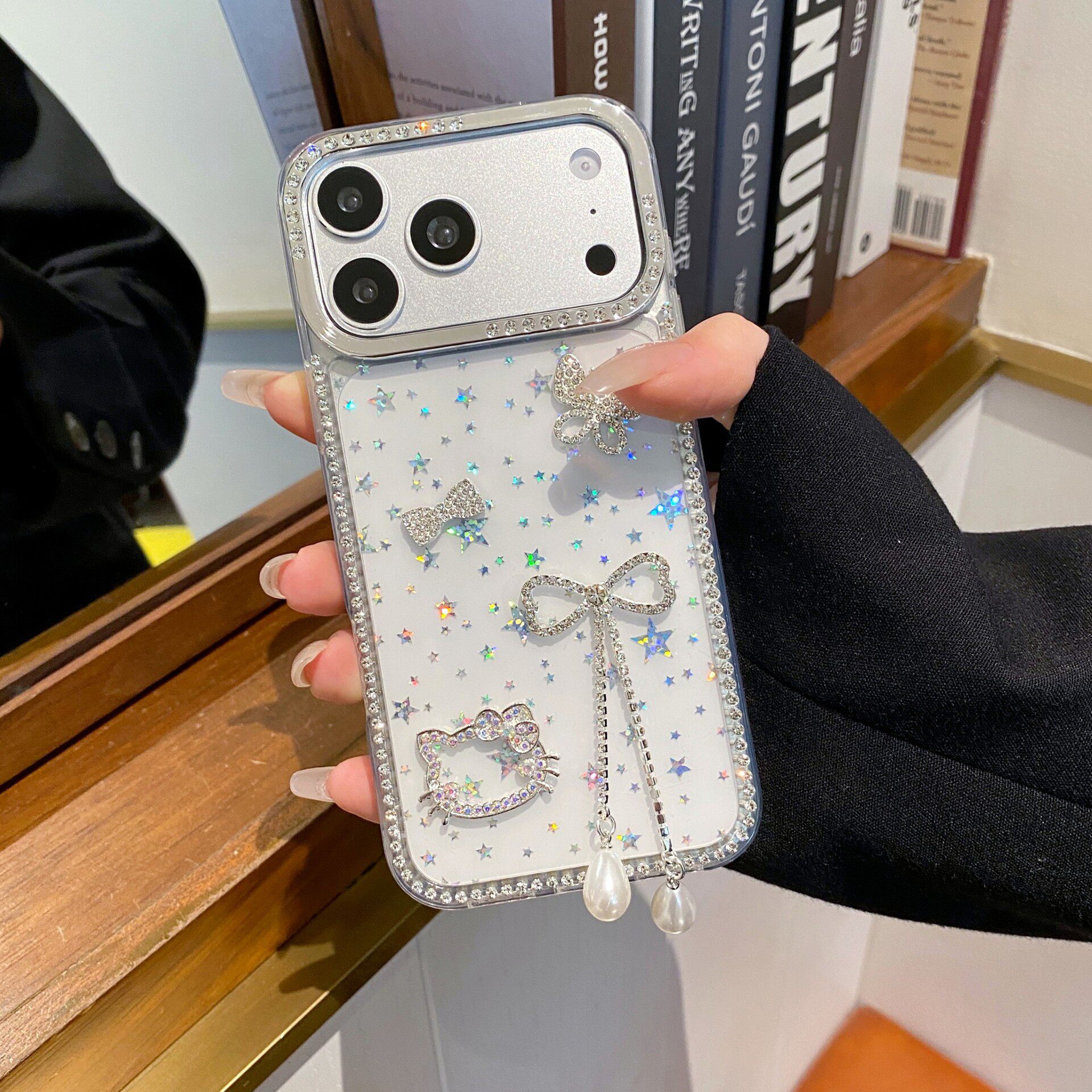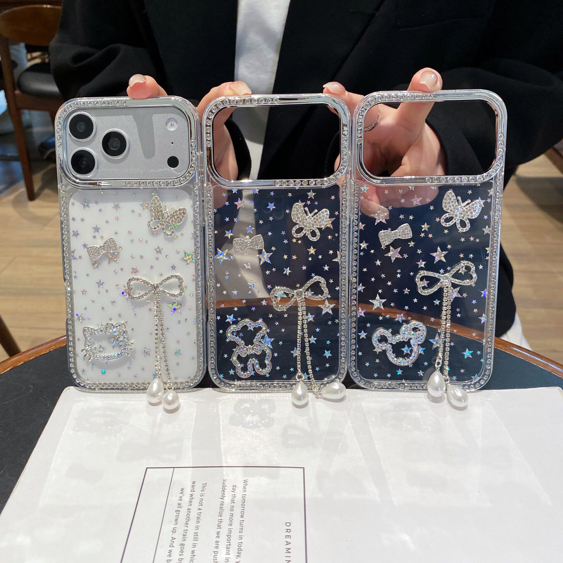 蝴蝶结流苏渐变星星壳适用苹果16promax手机壳iPhone17两边钻14pro女款13透明12全包防摔11保护套15时尚新款