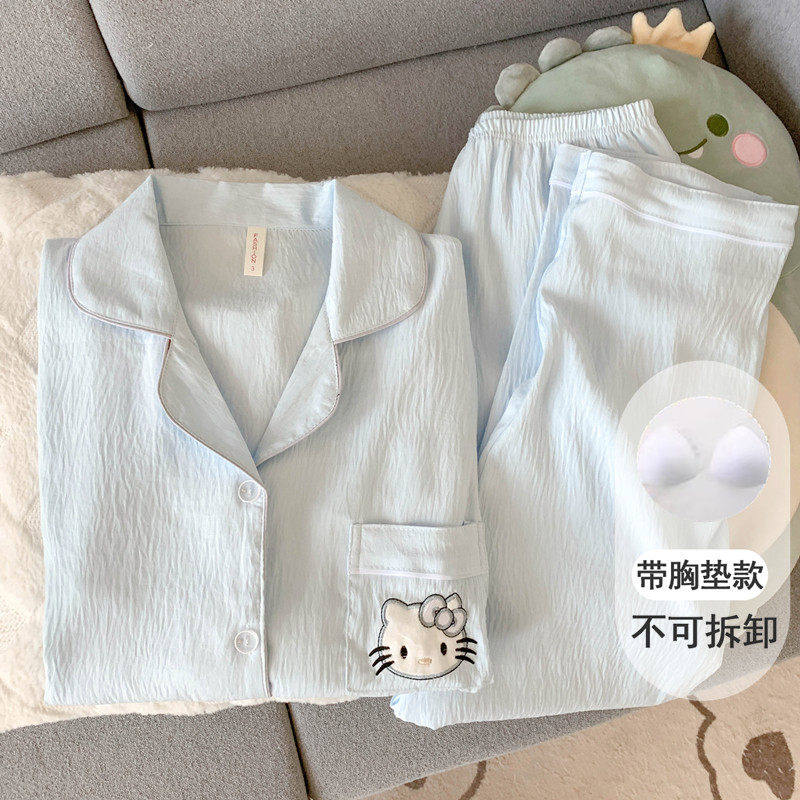 纯棉带胸垫睡衣女2025新款春秋季长袖套装可爱卡通韩版家居服秋冬