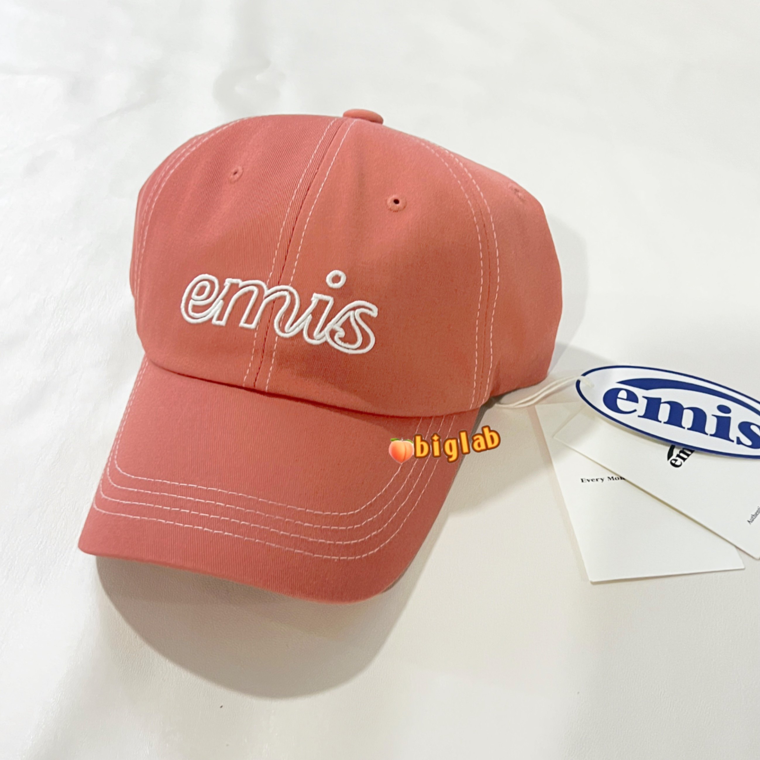 韩国正品emis新款手写体镂空logo棒球帽男女同款鸭舌帽学生情侣帽