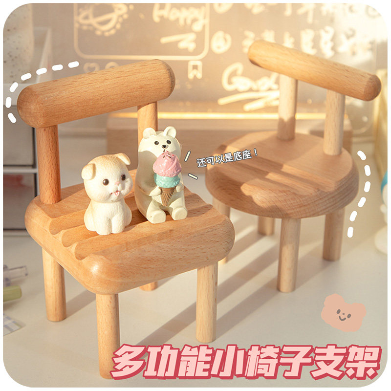 手机支架小椅子2026新款工位布置好物桌面平板实木小凳子创意摆件