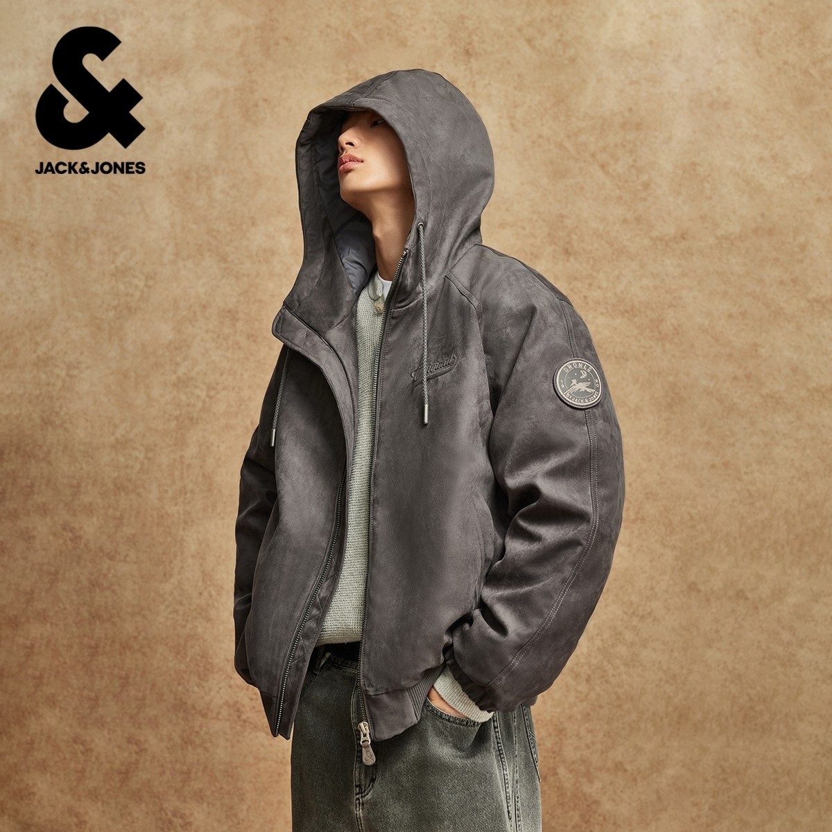 杰克琼斯男装春季夹克外套时尚百搭略宽松抽绳连帽拉链门襟字母潮