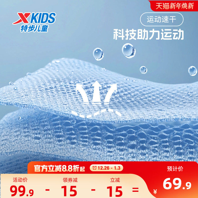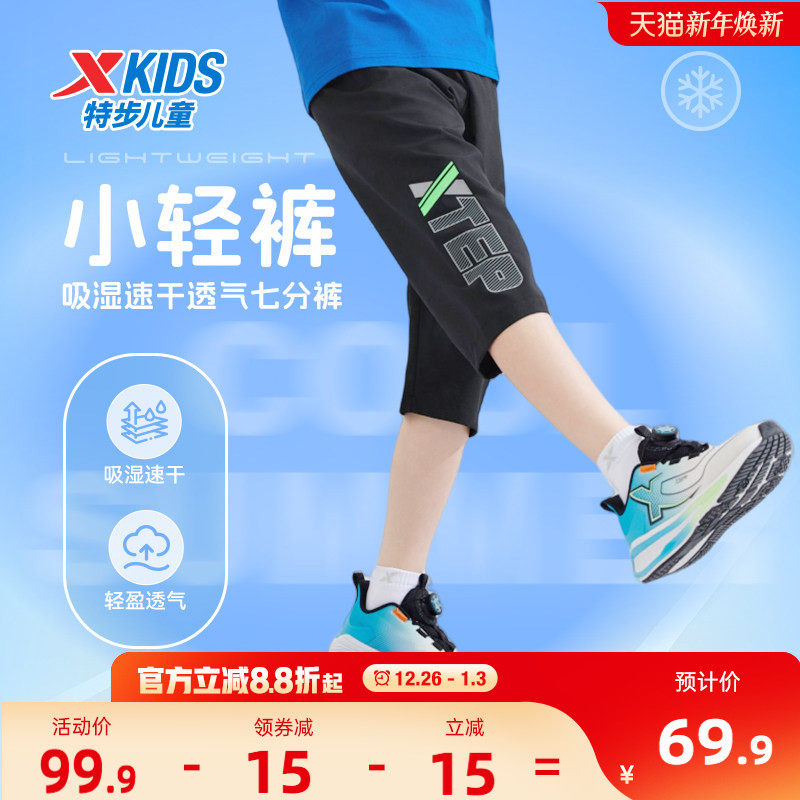 特步童装男童速干运动裤2025夏季新款大童七分裤儿童裤子印花夏装
