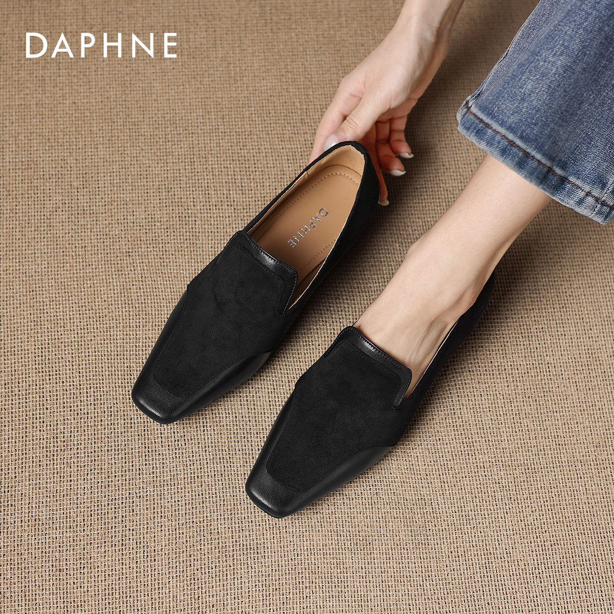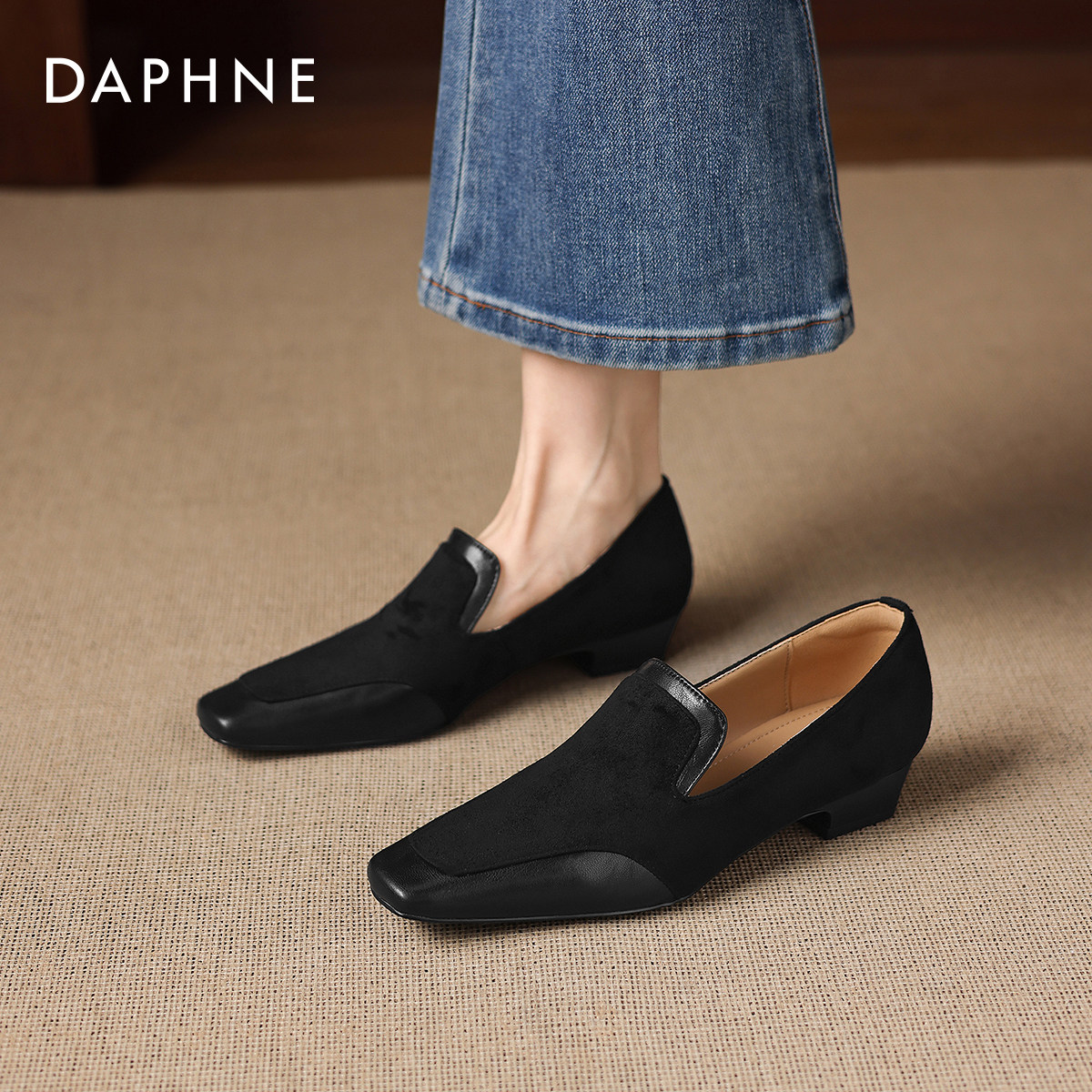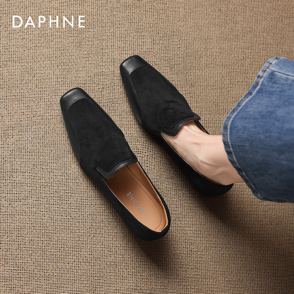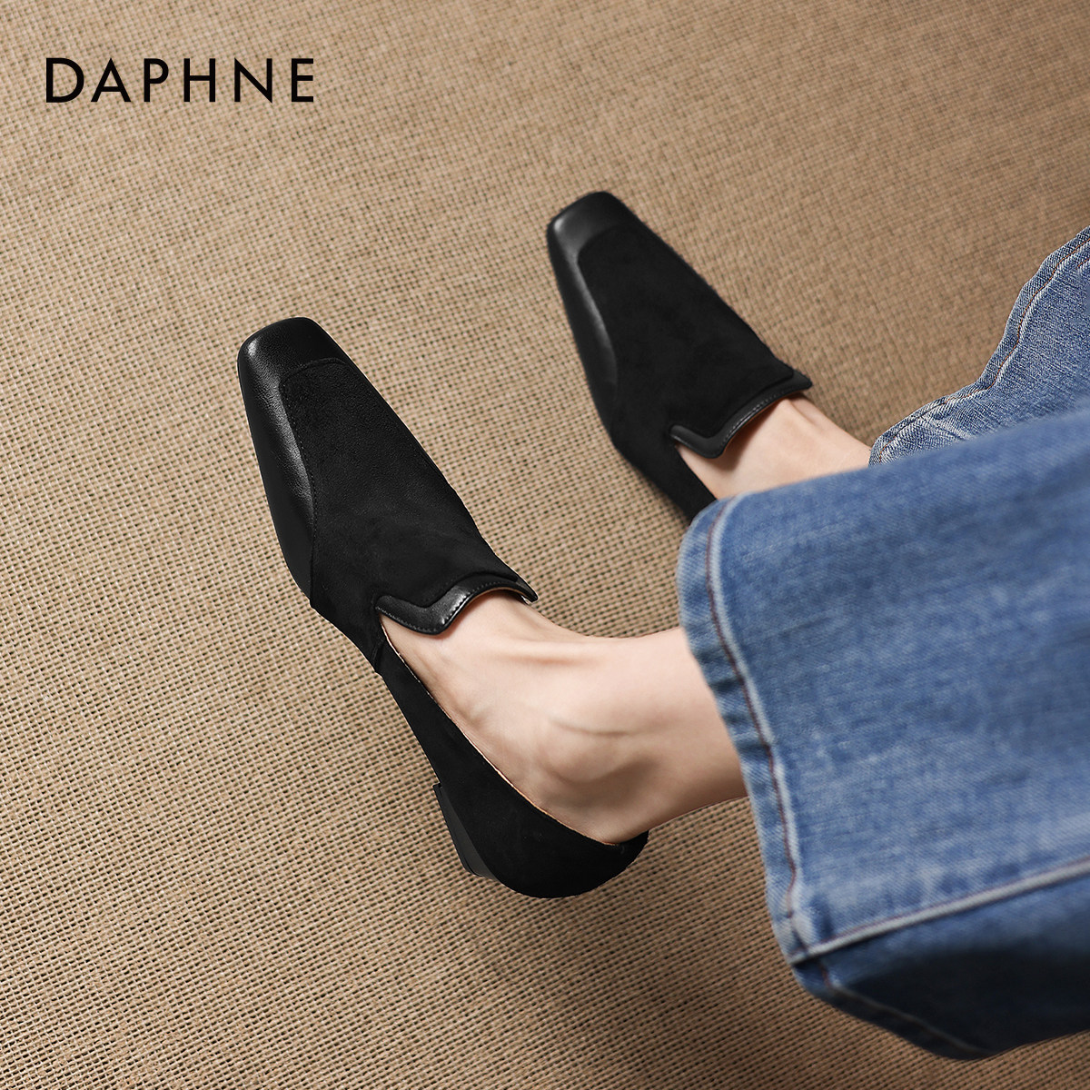 达芙妮复古方头乐福鞋女2026新款黑色通勤一脚蹬软底皮鞋豆豆单鞋