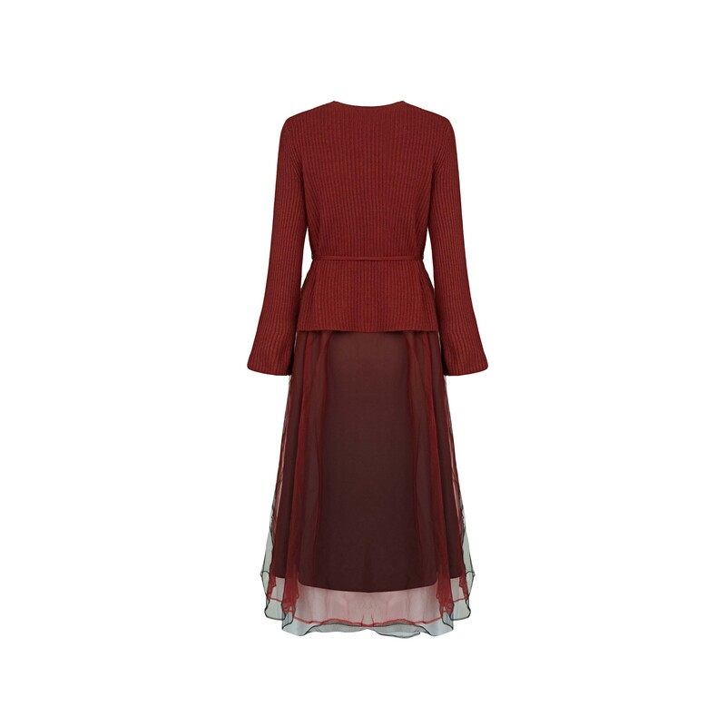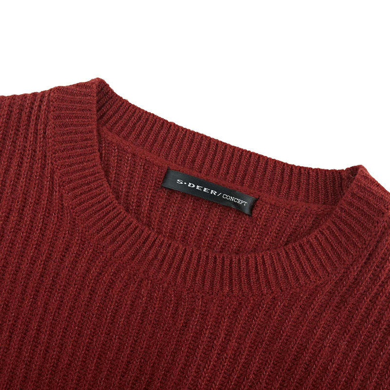 sdeer圣迪奥女装圆领收腰网纱针织连衣裙套装S234Z1424