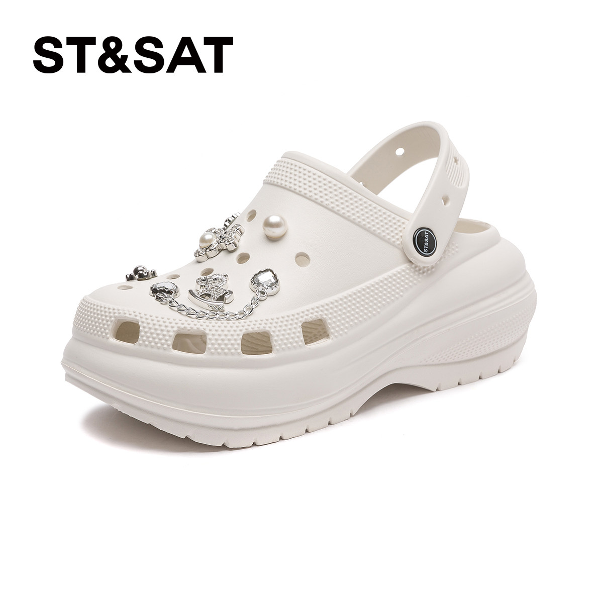 星期六超火水钻厚底洞洞鞋女外穿2025夏季新款时尚增高包头凉鞋拖