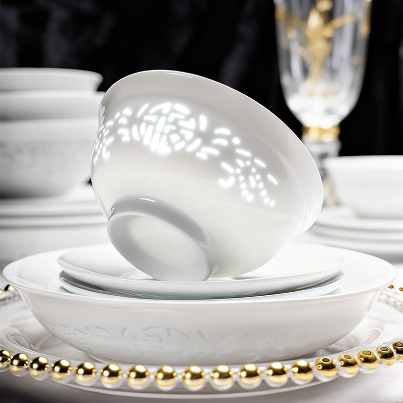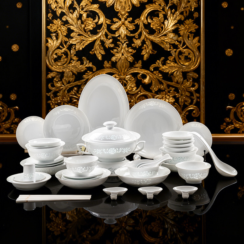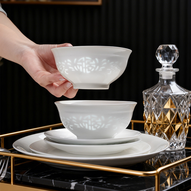 碗碟套装景德镇玲珑瓷福釉下彩餐具家用轻奢碗盘碟勺乔迁礼品镂空