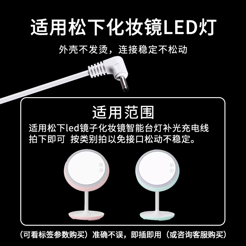 适用松下LED化妆镜美梳妆镜灯补光台灯加延长供USB充电源适配器线头HHLT0625PL 3.5mm5V4.5W小圆口孔充电线