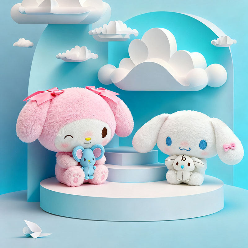 三丽鸥正品HelloKitty美乐蒂库洛米巴库小熊正品毛绒公仔抱枕玩偶