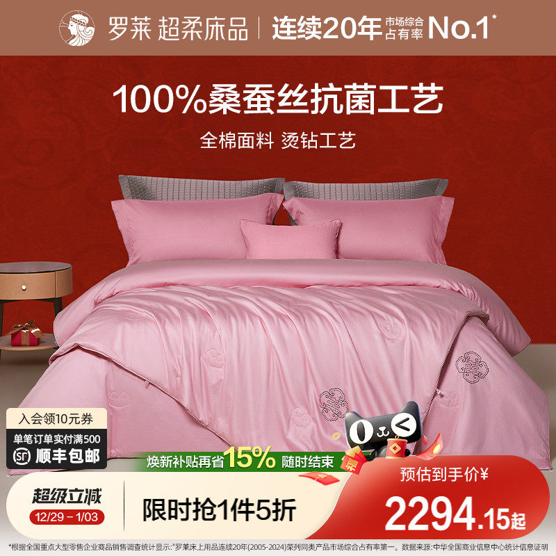 罗莱家纺被子双人床婚庆蚕丝被全棉100%桑蚕丝四季被春秋被芯冬被