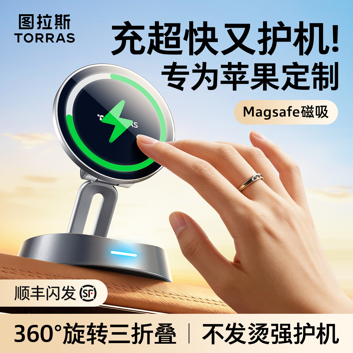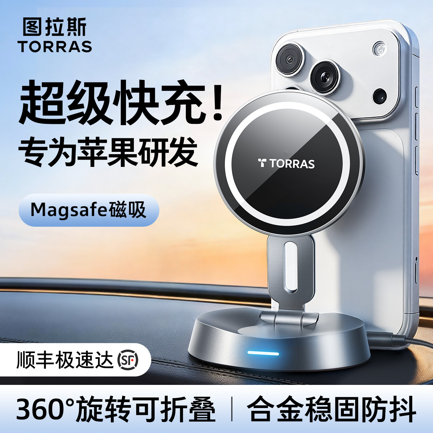 图拉斯车载无线充电器手机支架2026新款苹果磁吸式仪表台吸附神器