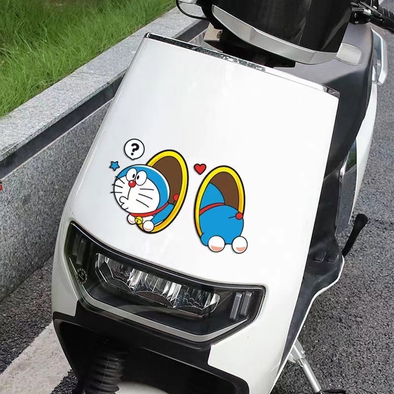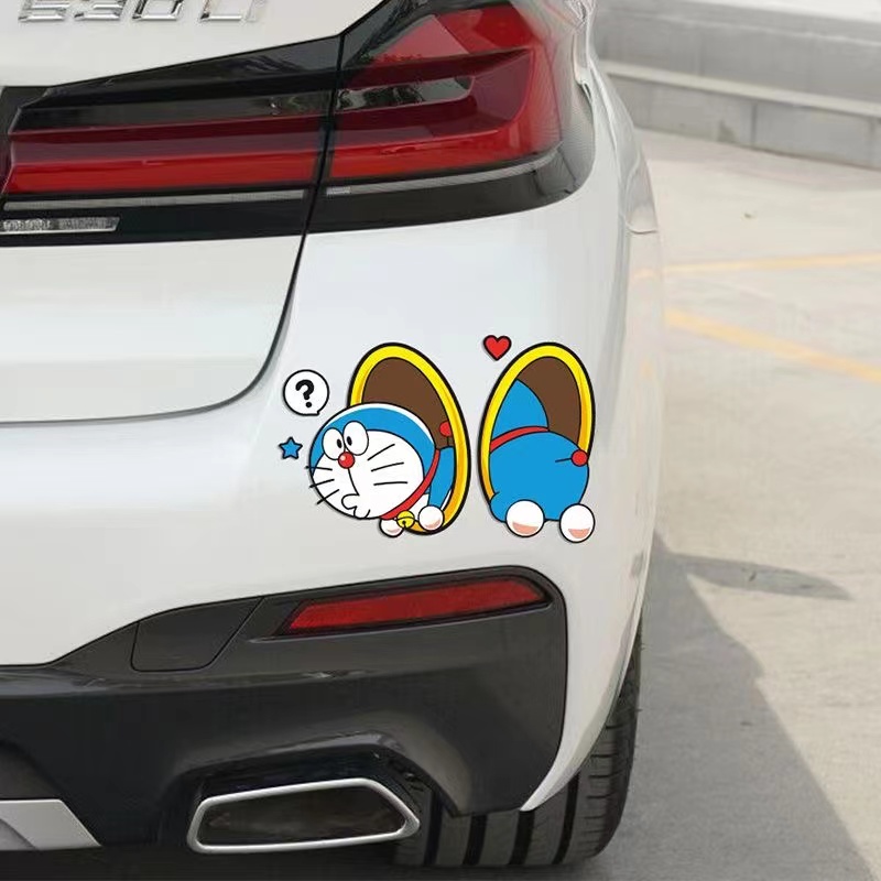 哆啦A梦可爱卡通车贴汽车创意个性叮当猫钻管道划痕刮花遮挡贴纸