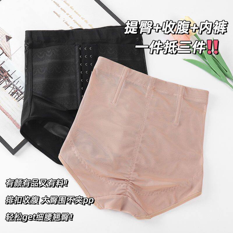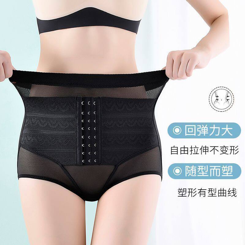中腰排扣收腹内裤收小肚子强力女士束腰提臀塑身裤夏季网纱黑色