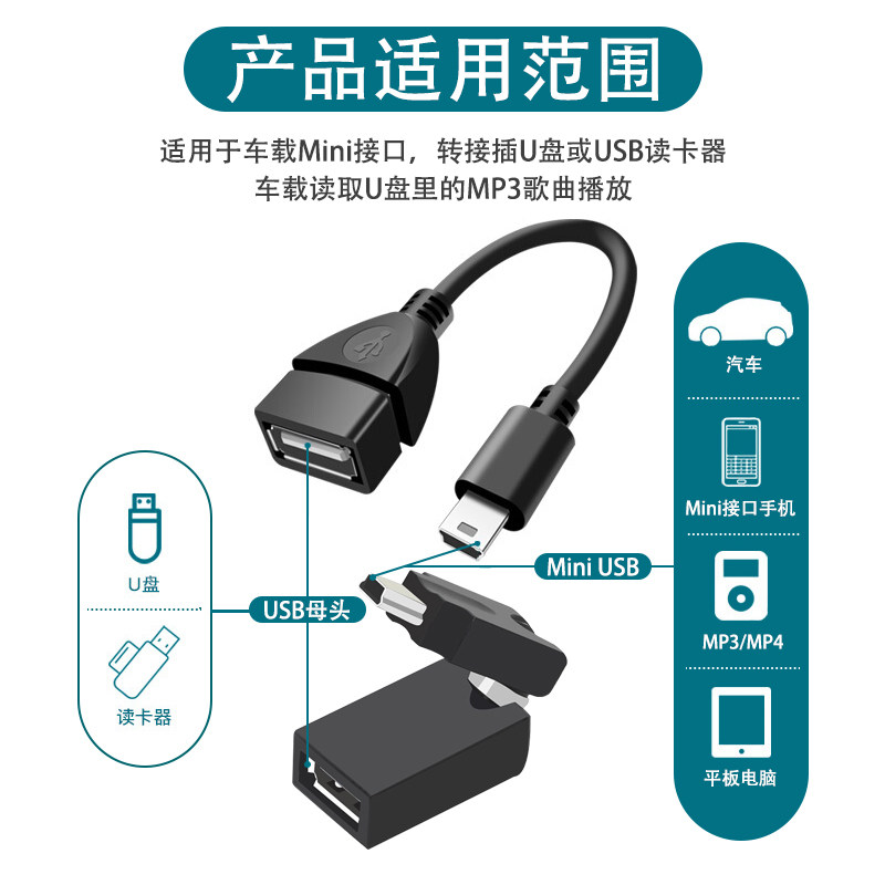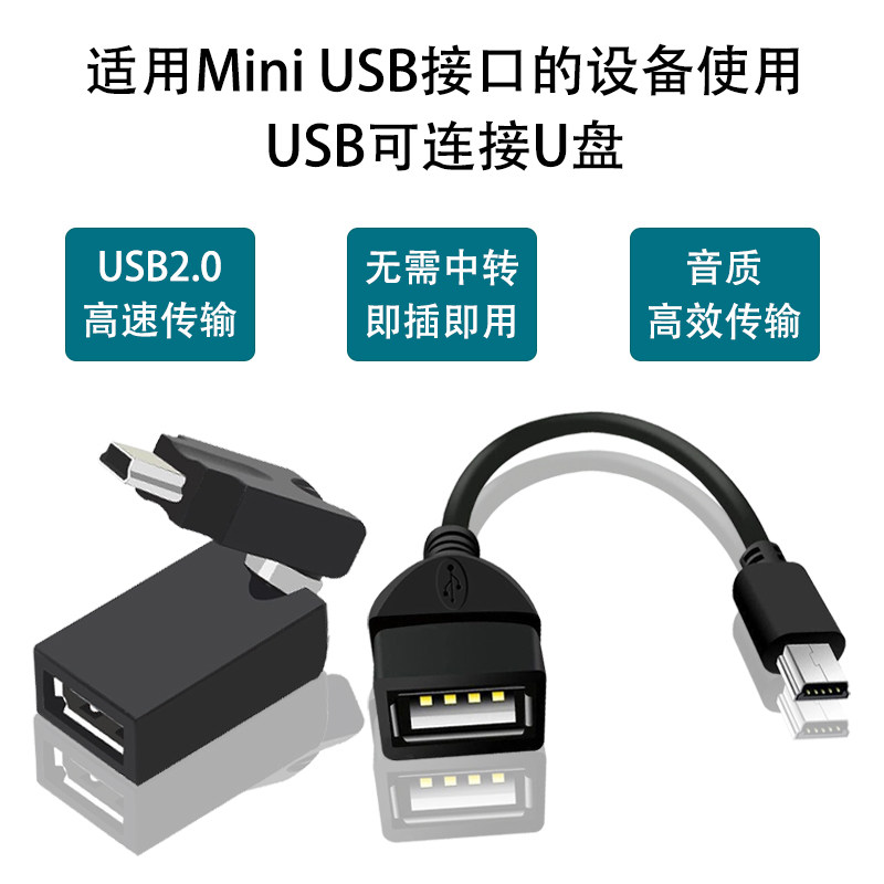 车用U盘转接头mini迷你usb汽车音响otg优盘导航转换器充电连接线