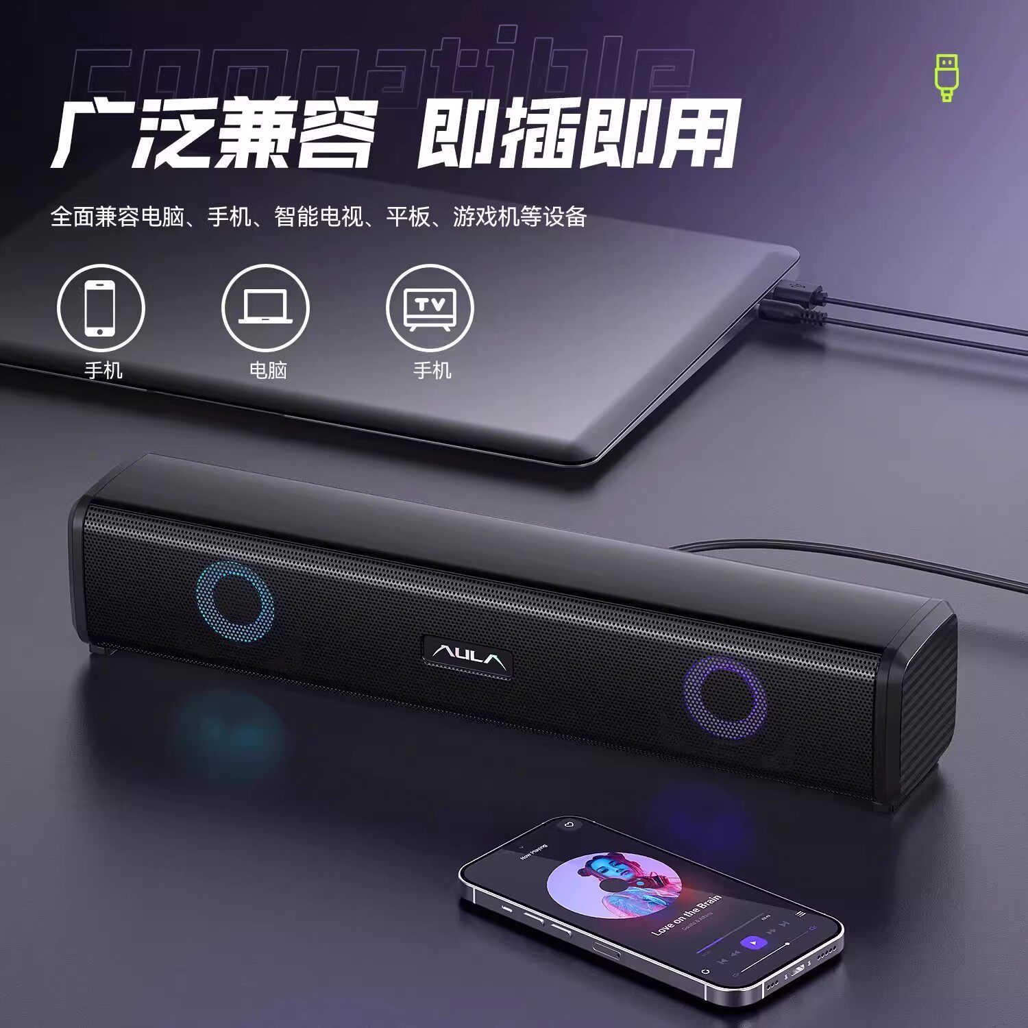狼蛛N170立体声长条音箱双喇叭桌面电脑高音响重低音炮游戏多媒体