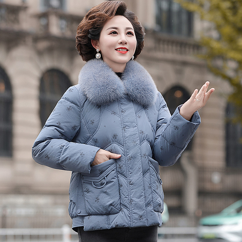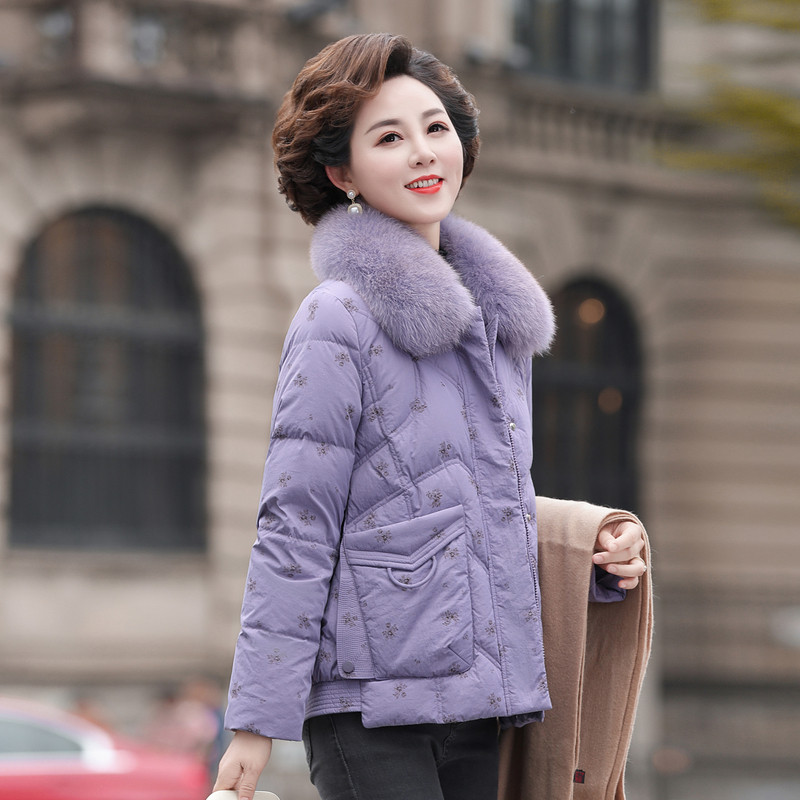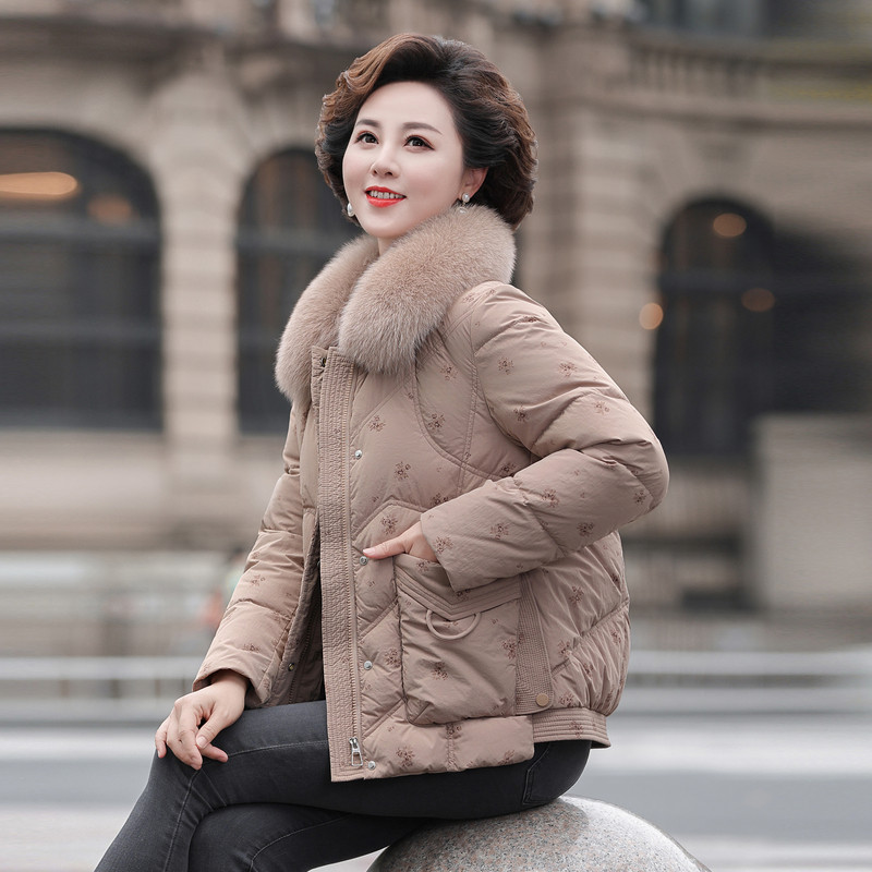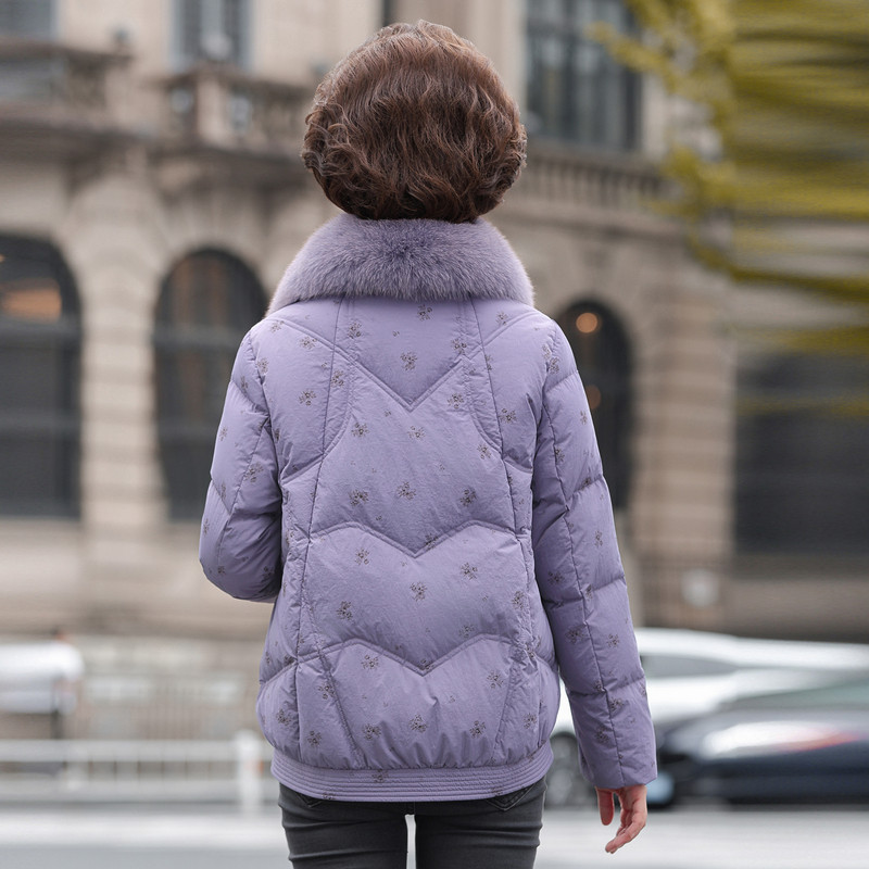 雪中飞2026春新款女士妈妈款短羽绒服狐狸毛领保暖民族风花纹