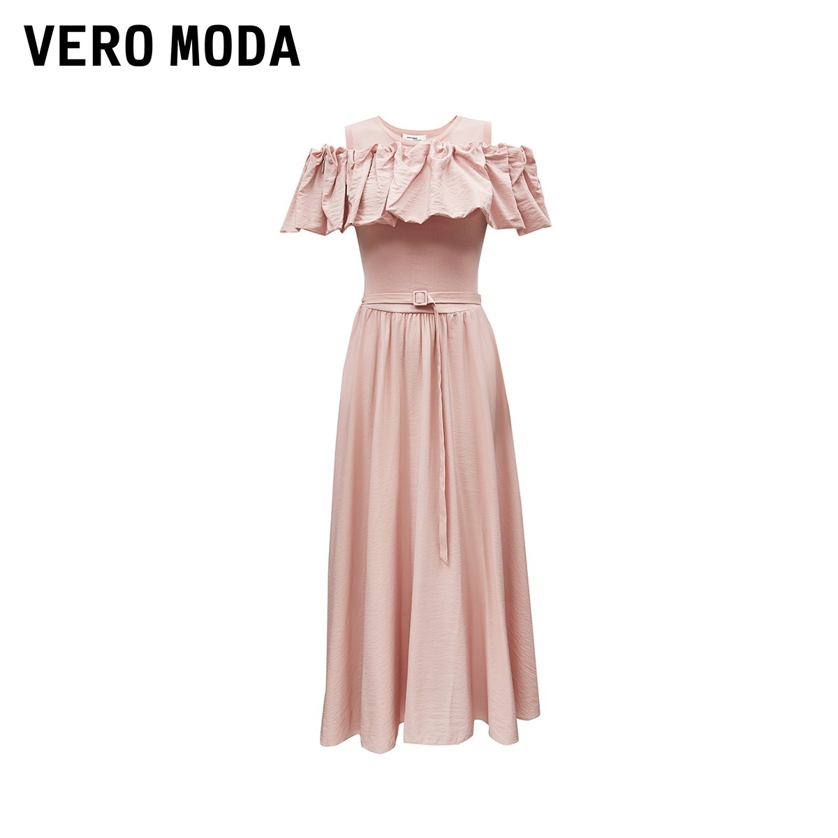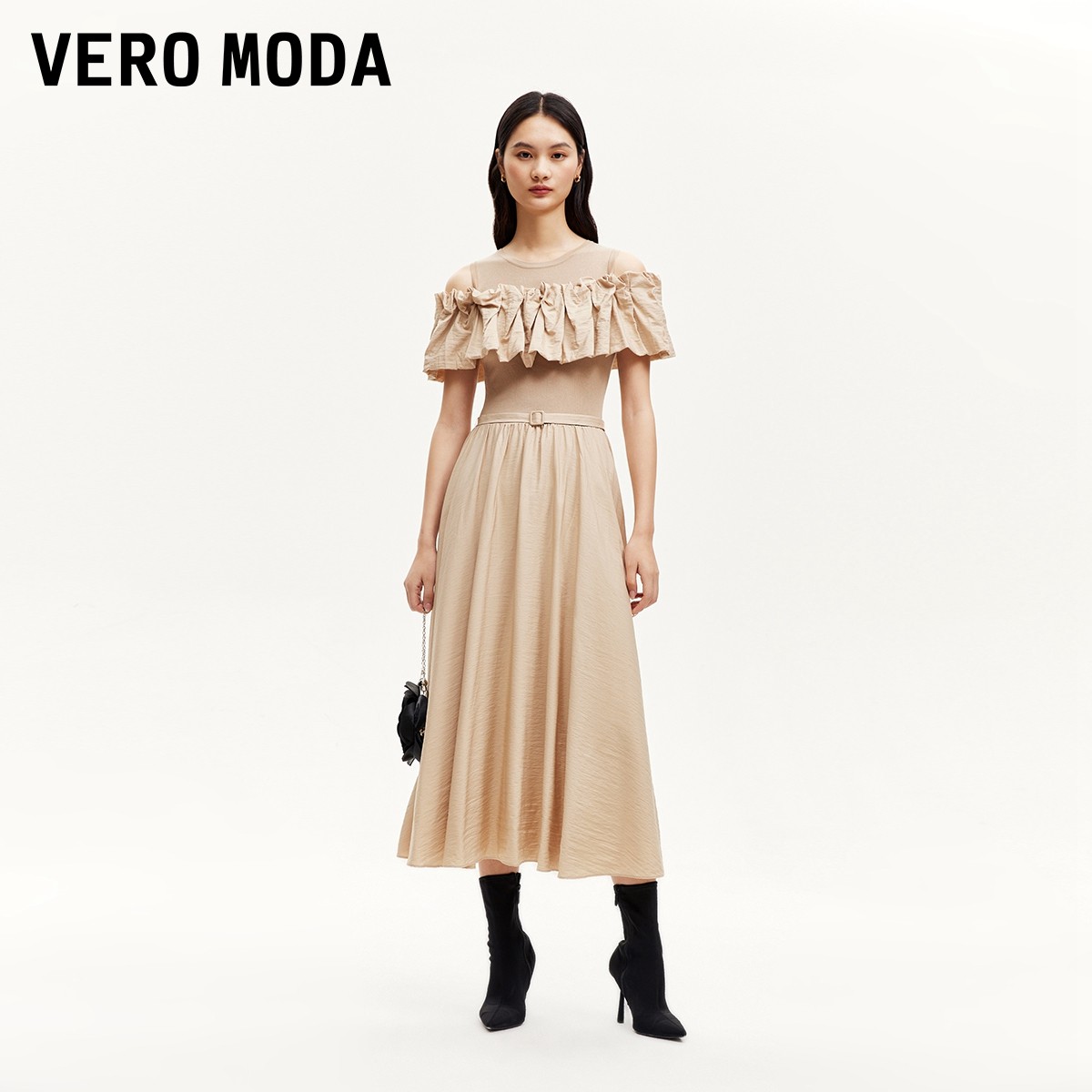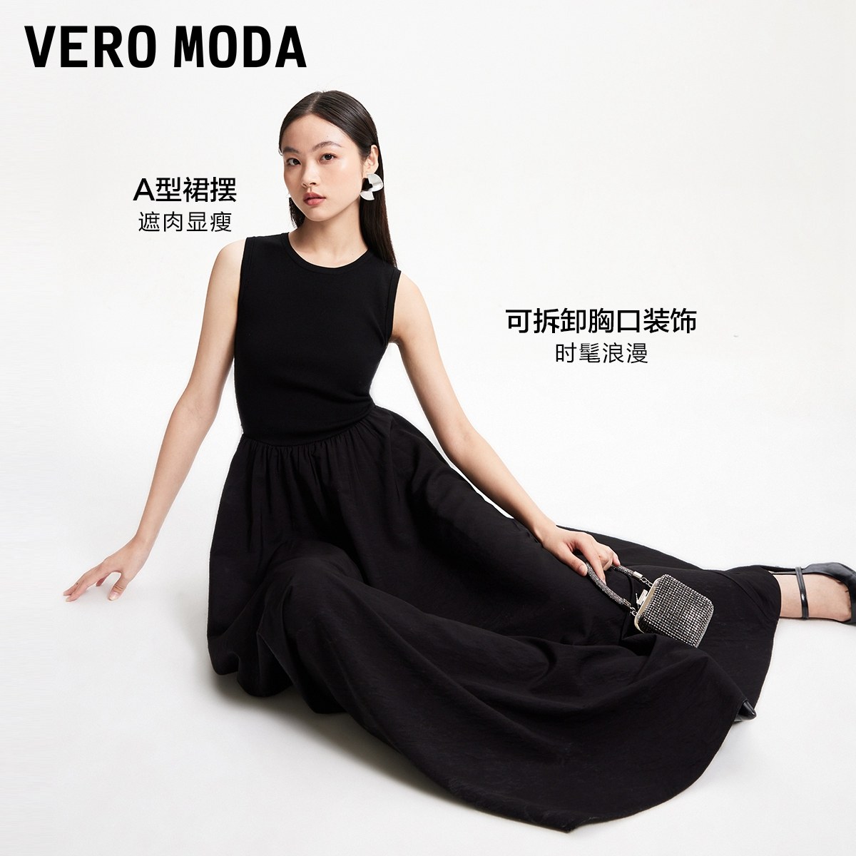 Vero Moda奥莱连衣裙秋冬新款圆领A型大裙摆长裙抹胸可拆裙子短袖