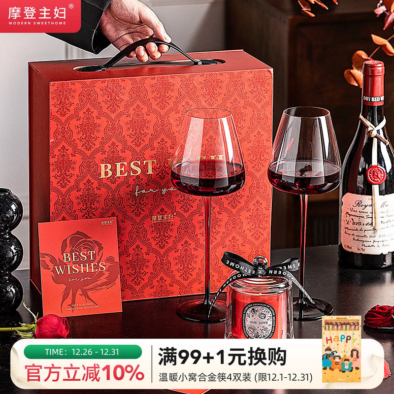 摩登主妇红酒杯套装敬酒杯高脚杯一对杯子结婚新婚订婚礼物香槟杯