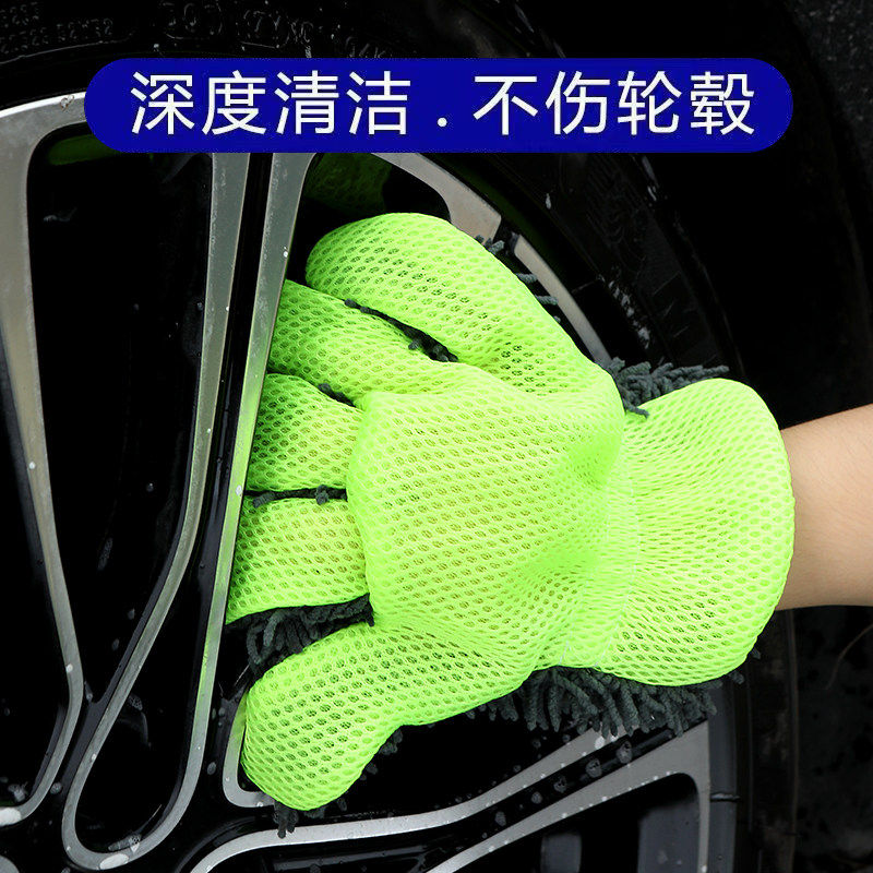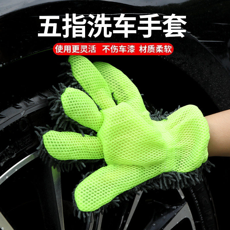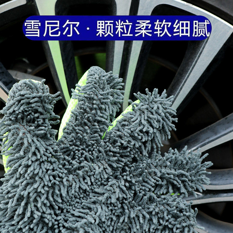 车漆海绵轮毂清洗不伤擦车加厚美容洗车毛绒手套五指毛绒绒雪尼尔
