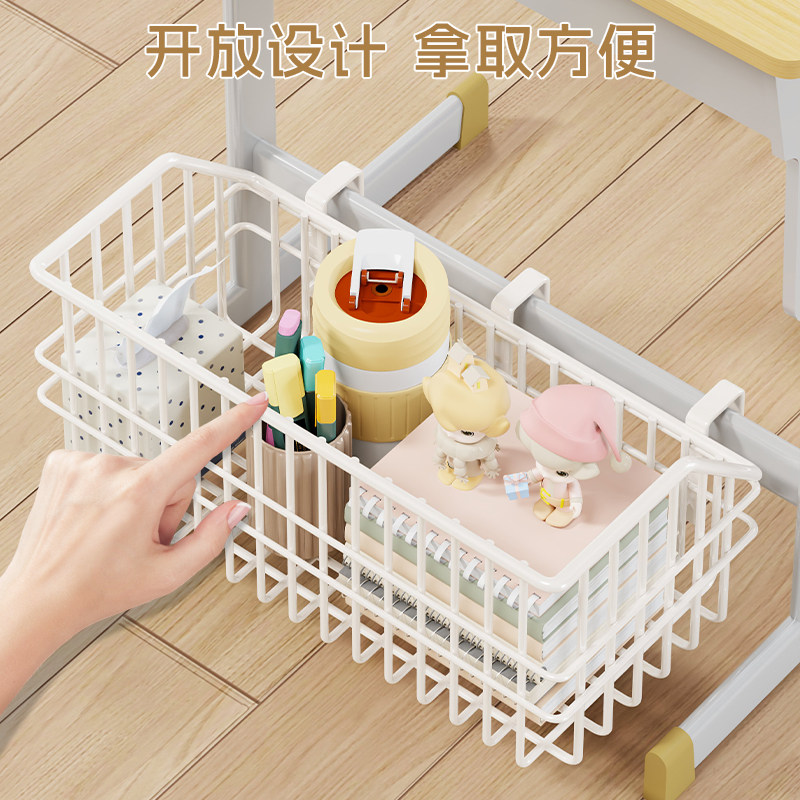 桌下侧边挂篮学生书桌收纳置物架教室放书包收纳筐儿童书架多功能书箱教室用大容量书籍本收纳神器免钉收纳箱