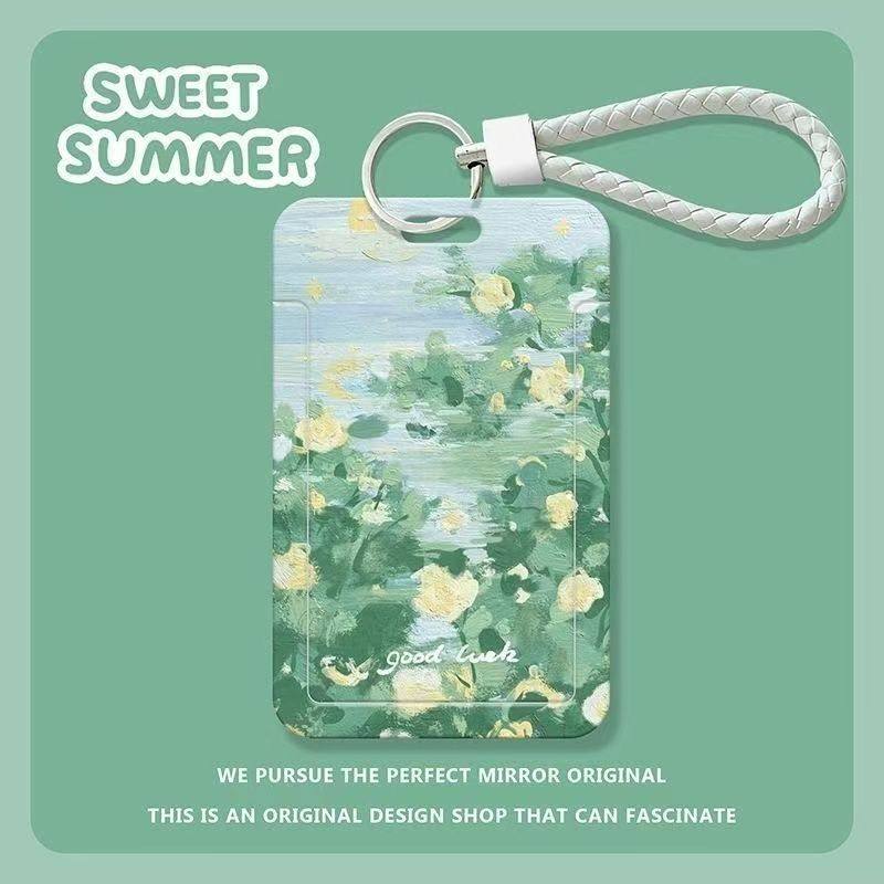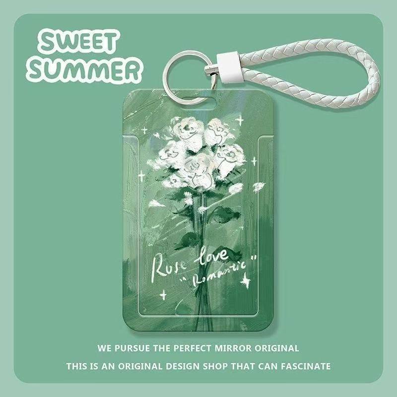 ins简约绿色清新款滑盖卡套饭卡公交卡身证件保护套门禁卡校园卡