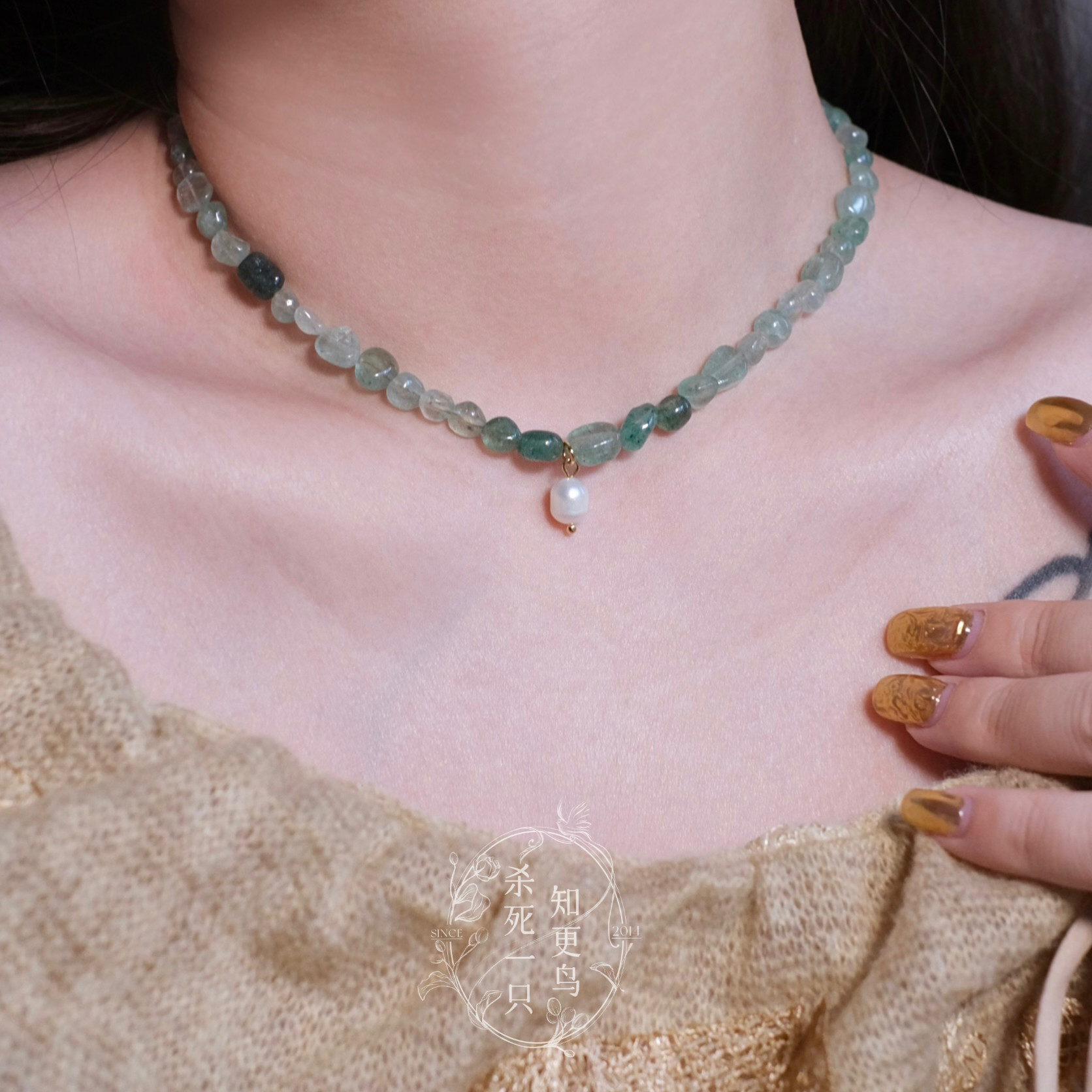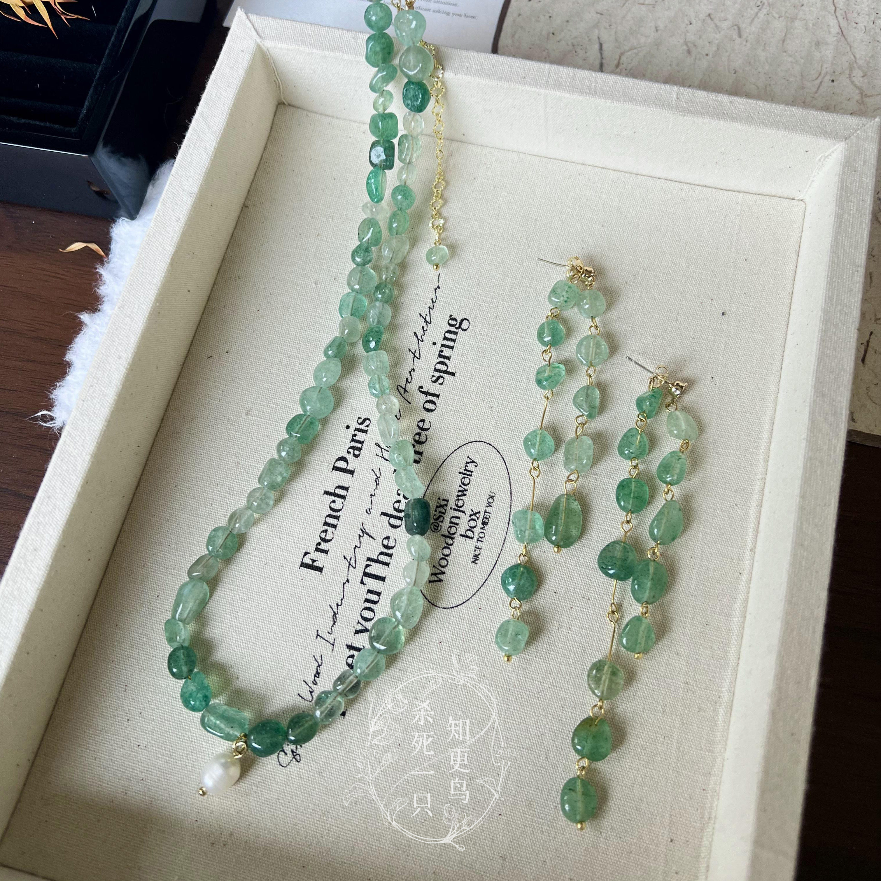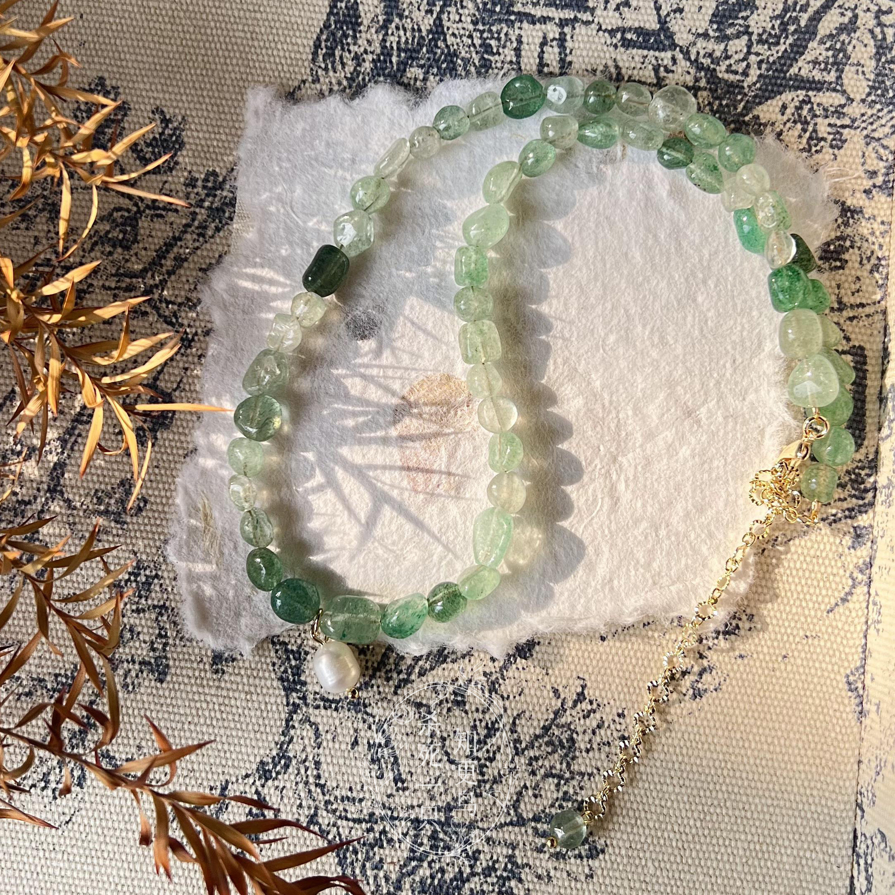 《小石潭记》原创春夏复古新中式绿色渐变天然水晶珍珠项链锁骨链
