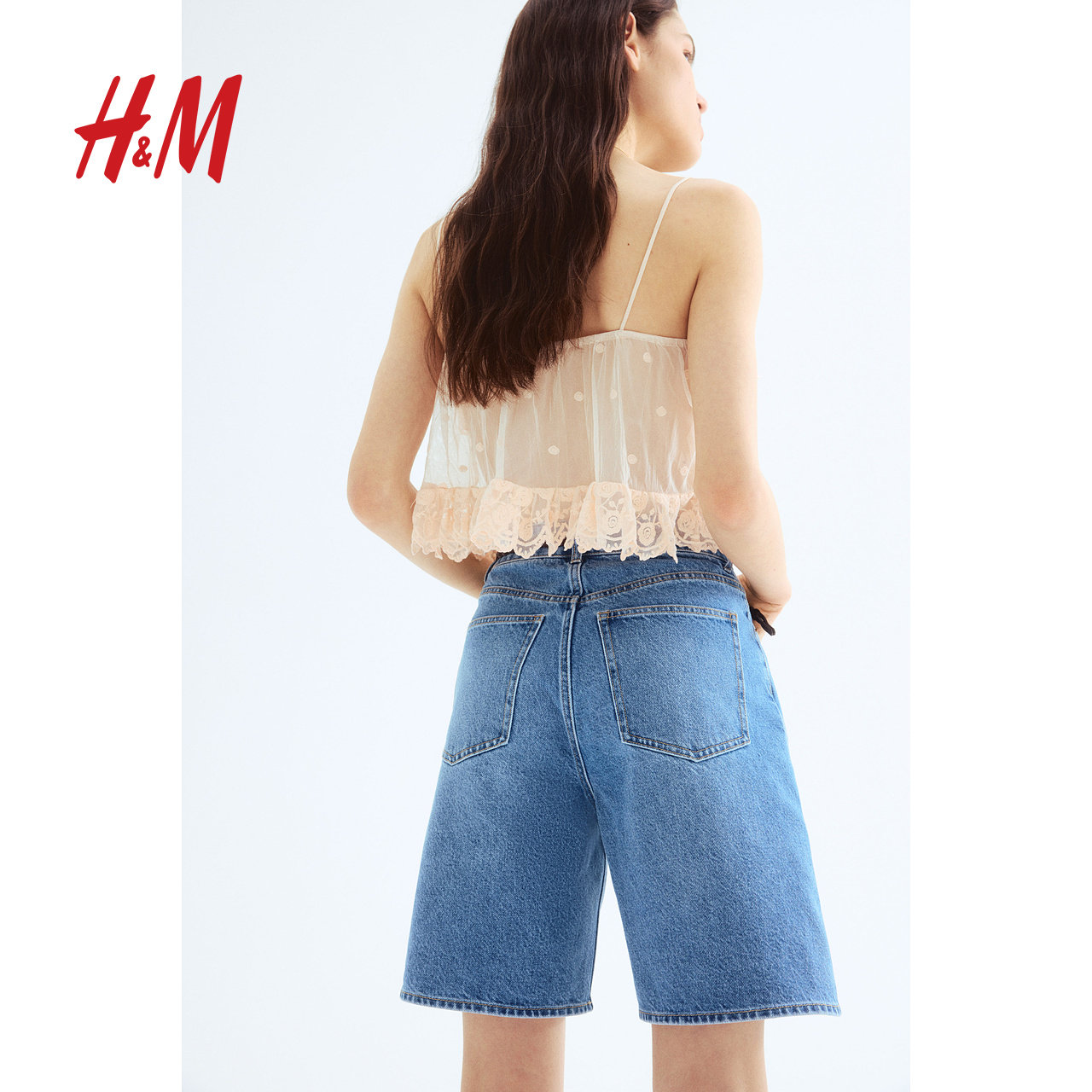 HM女装牛仔裤春季潮流时尚百慕大美式风五分牛仔裤短裤1273974