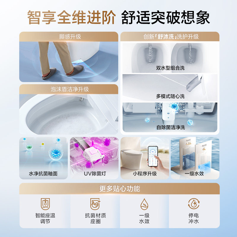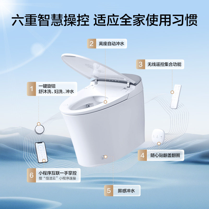 恒洁智能马桶全自动坐便器翻盖泡沫盾脚感家用零压小户型h35mate