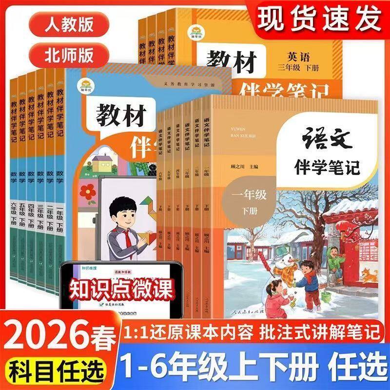 2026新版语文人民教育出版社小学教材伴学笔记一二三四年级五六年级下册语文课堂笔记数学英语人教版北师大版同步讲解预复习辅导书