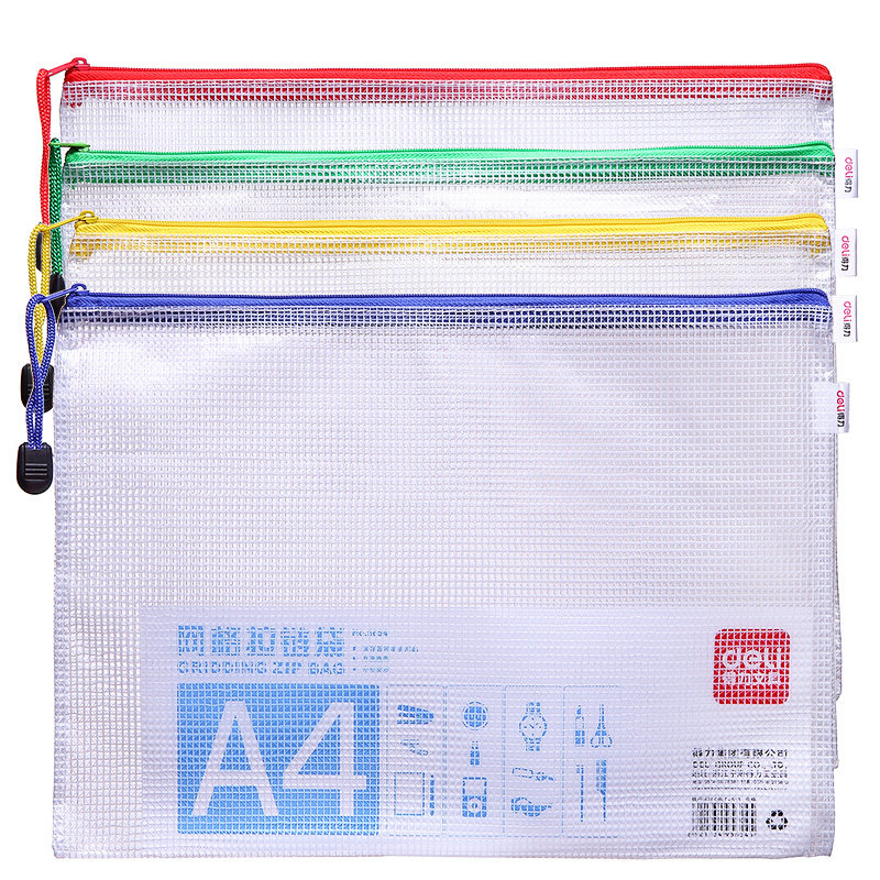得力彩色透明拉链袋a5/a4加厚防水网格学习袋公文袋文件包透明资料袋试卷收纳袋考试袋学生专用