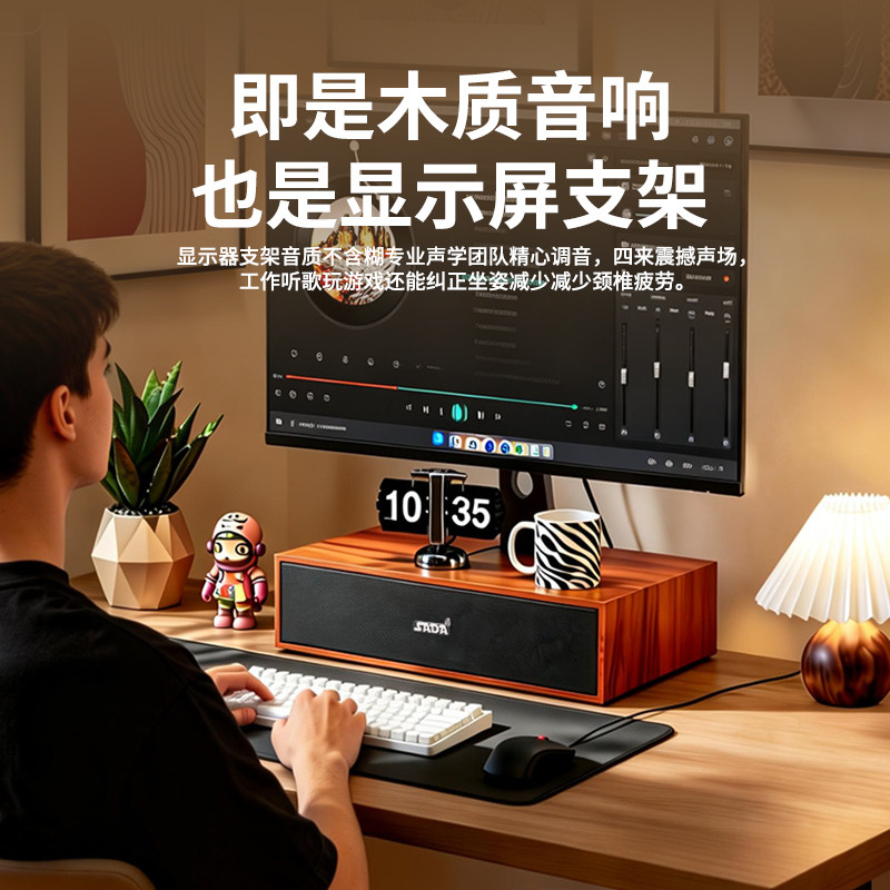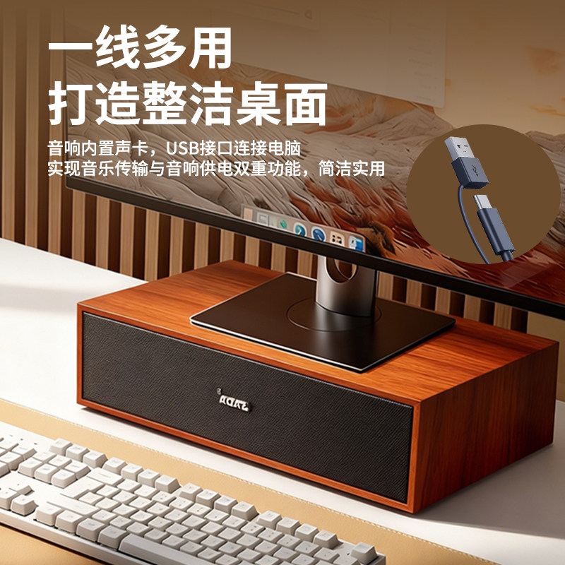 电脑音响台式家用木质蓝牙音箱USB有线低音炮桌面显示器增高支架