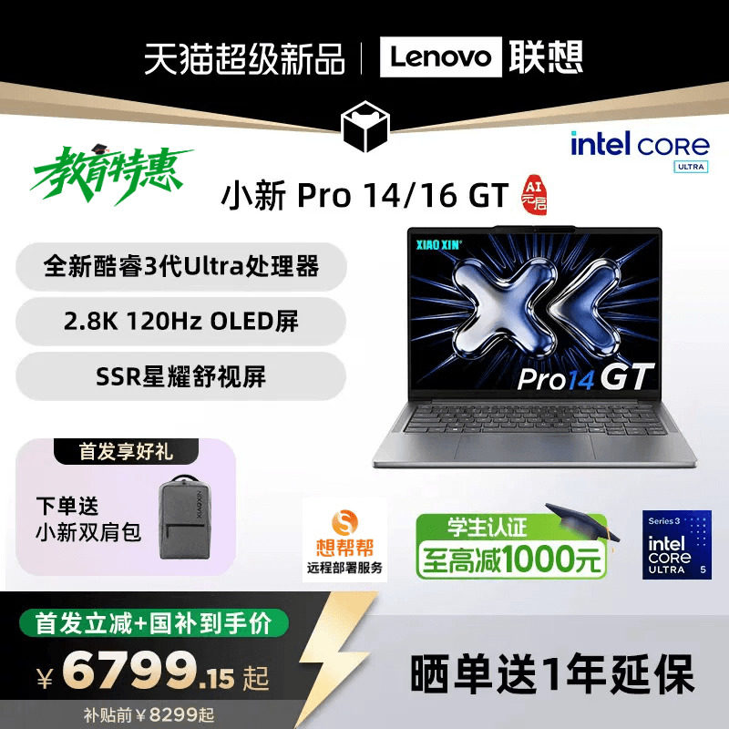 【新品首发+国补】联想小新Pro14/Pro16GT 2026 酷睿Ultra X9 可选 联想小新笔记本电脑pro16/14 小新14 360