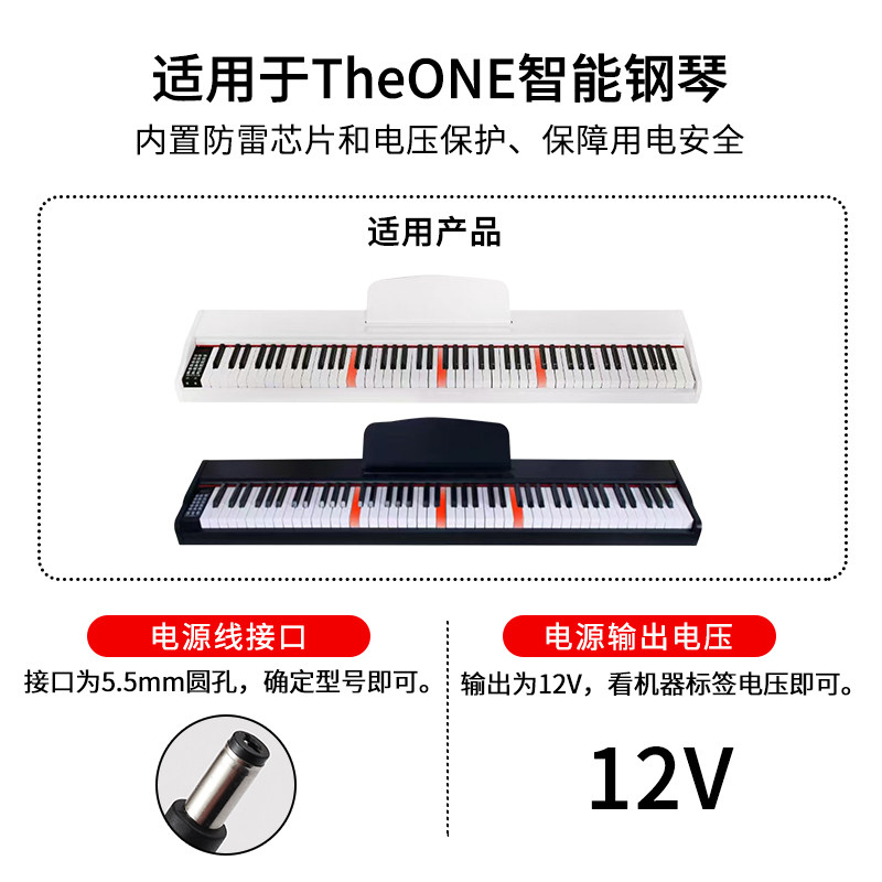 适用于TheONE智能钢琴61键智能电子琴TOK1钢琴电源线适配器12V2000MA2A