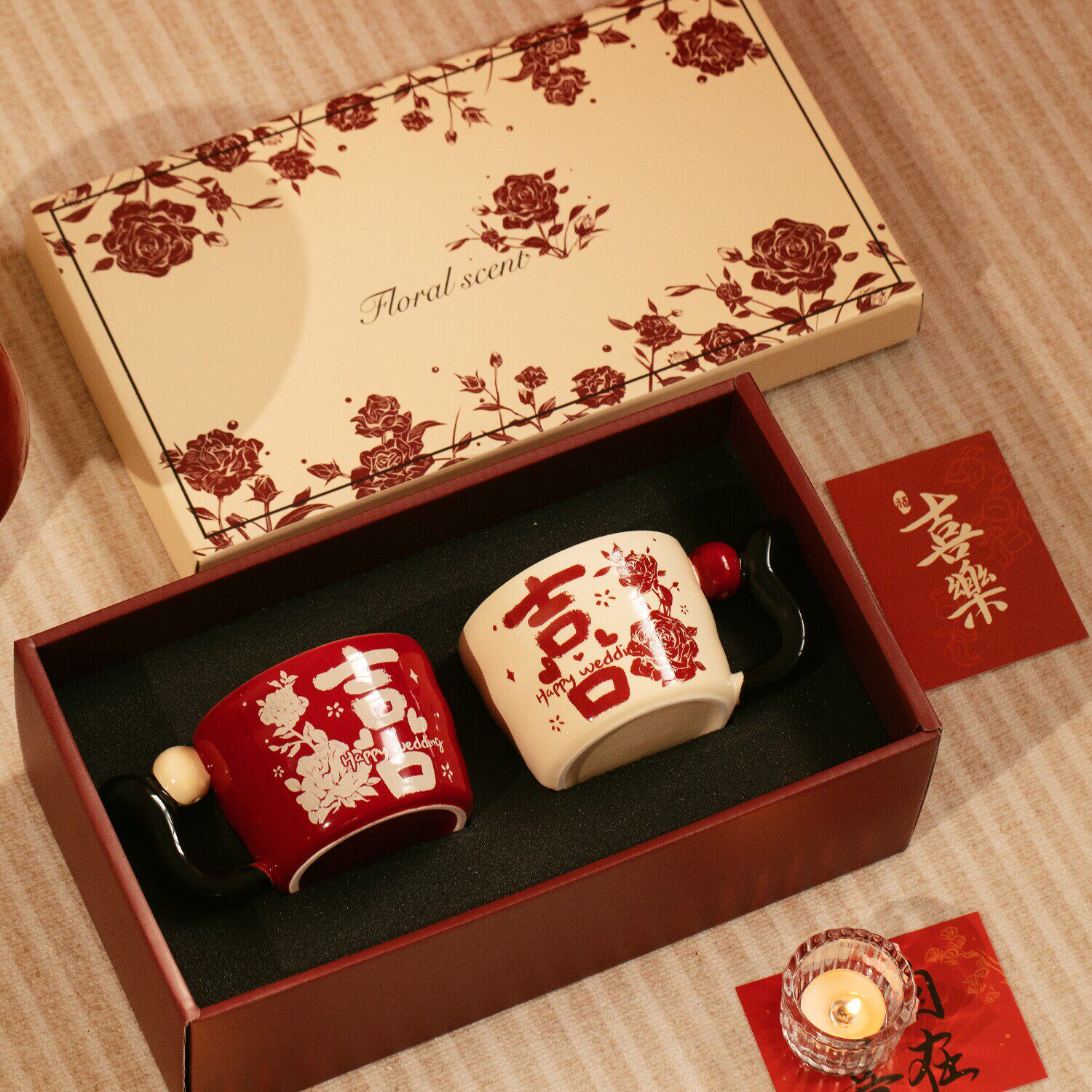 囍缘对杯结婚送新人订婚礼物新娘高级实用新婚情侣款杯子套装一对