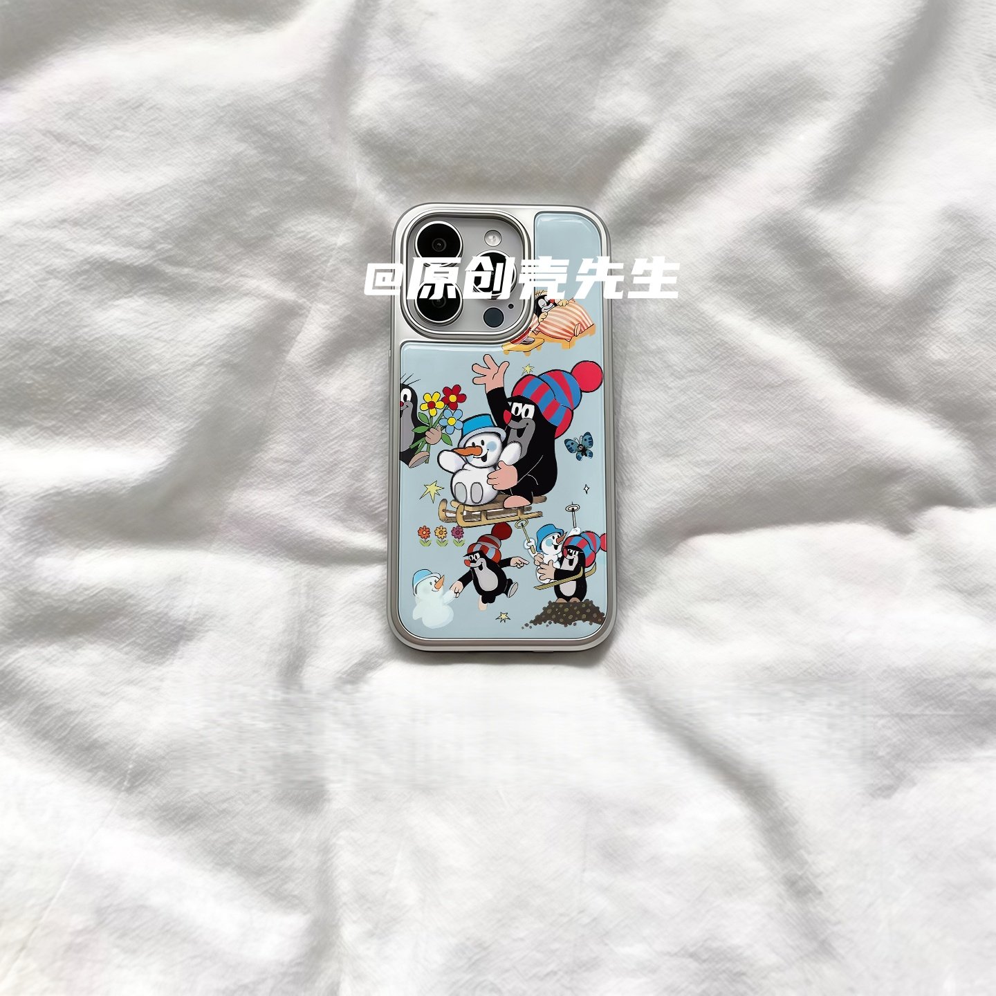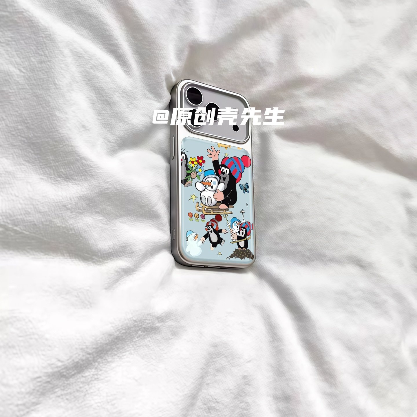 ins个性可爱雪人鼹鼠电镀银磁吸适用苹果iPhone17promax手机壳1615pro小米1415Pro华为mate60p70三星S23防摔
