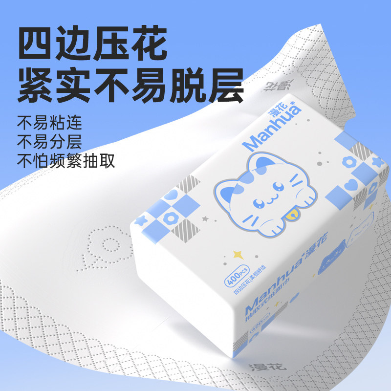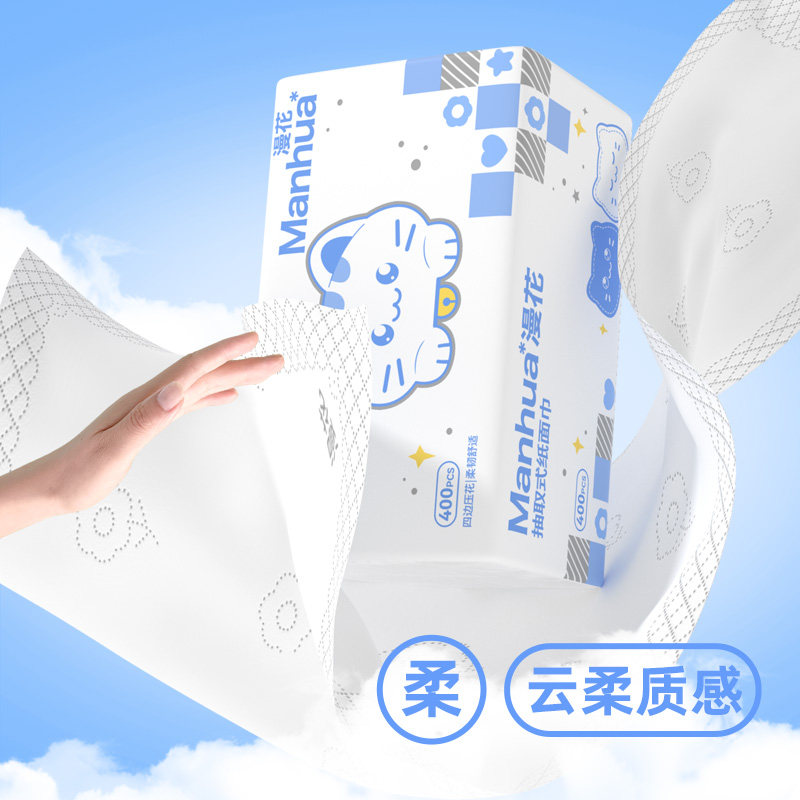 漫花抽纸纸巾400张大包家用实惠装整箱批四边压花卫生纸餐巾纸抽
