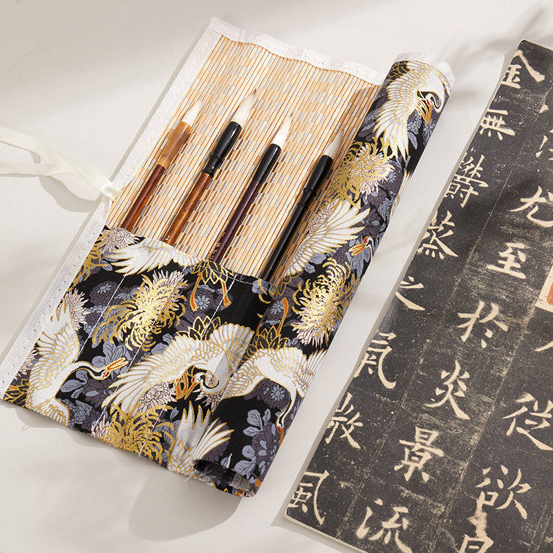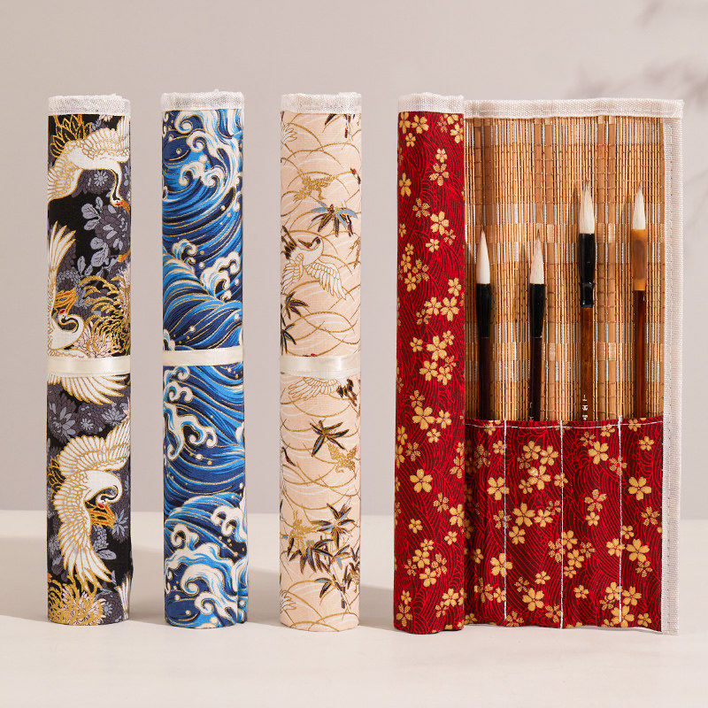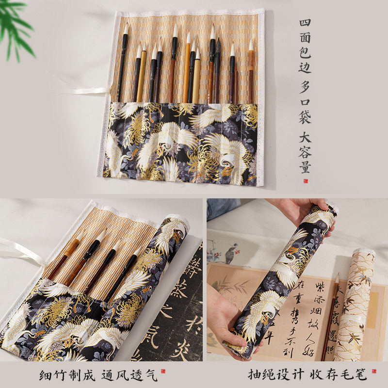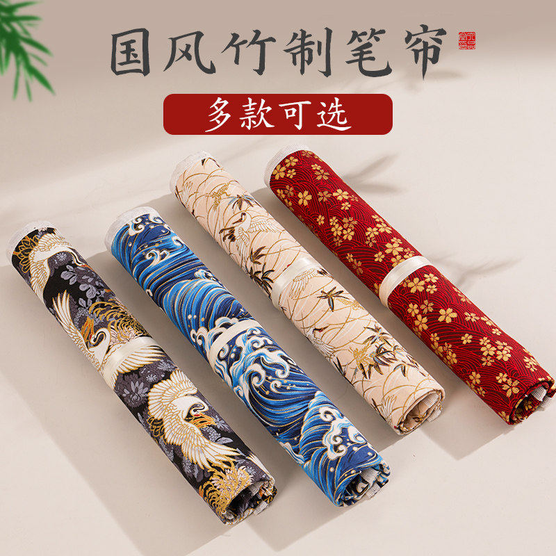 六品堂毛笔笔帘中国风竹制卷帘大容量便携书法卷笔袋卷毛笔的帘子收纳卷帘收纳盒笔帘子竹制袋子卷笔帘