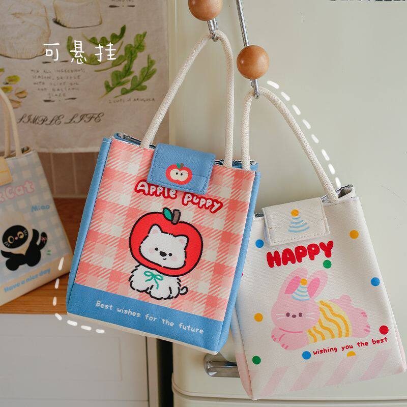 帆布手提包小巧百搭上班族便当包新款学生大容量饭盒袋简约手提袋