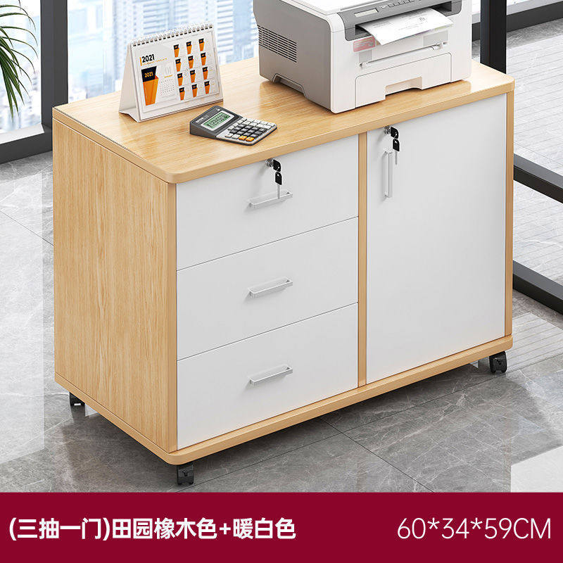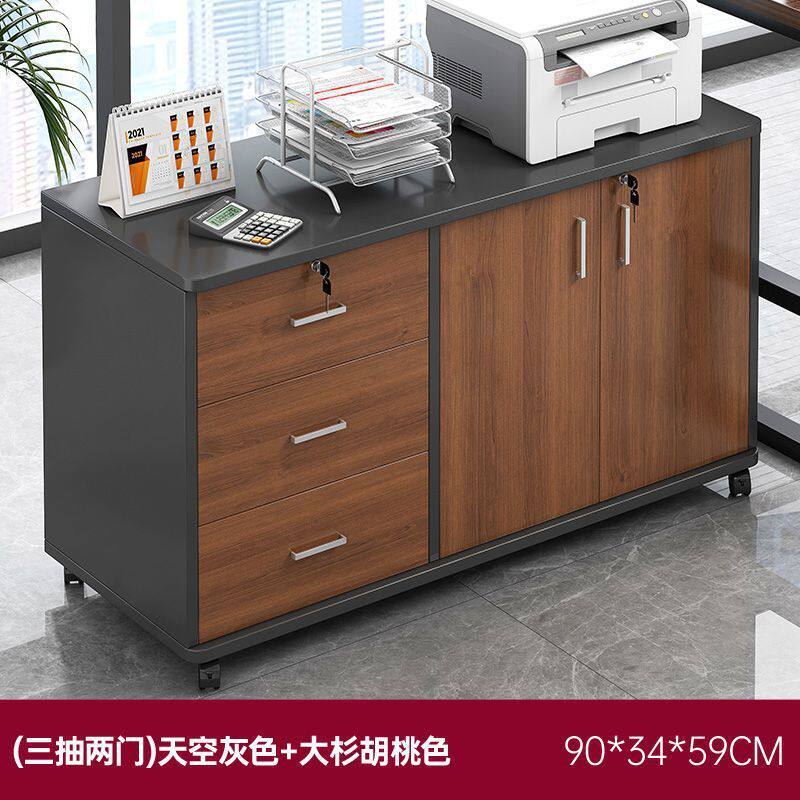 文件柜办公室侧边储物柜收纳柜木质带锁矮柜小桌下移动置物柜