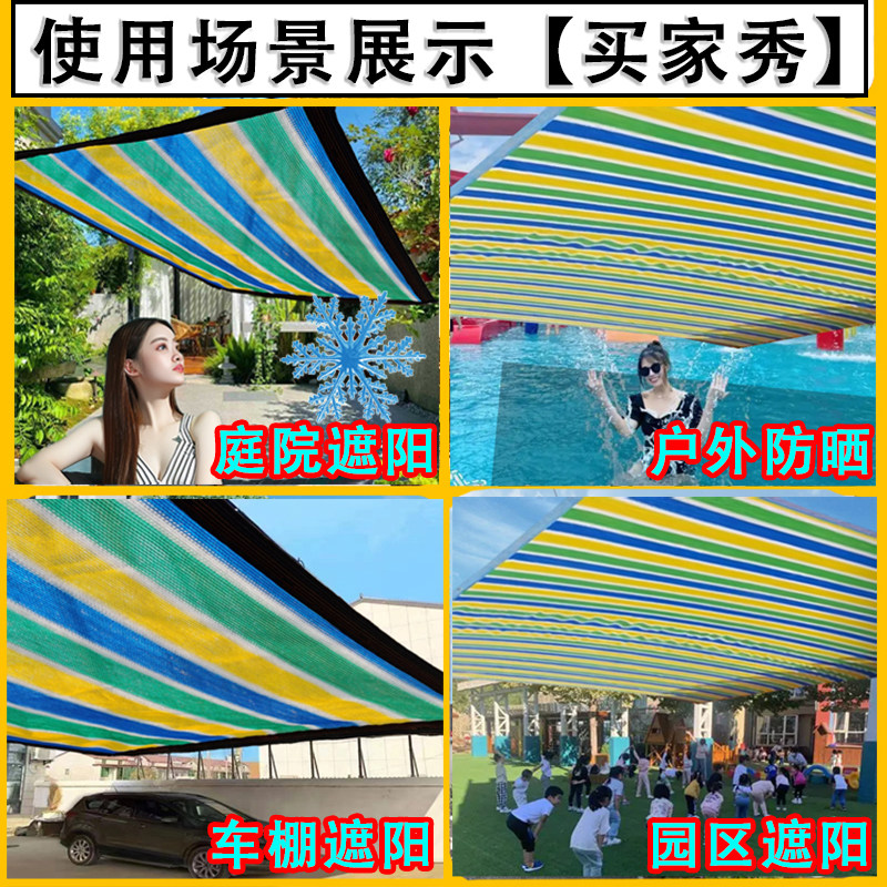 彩色遮阳网加密加厚卡通防晒网游乐园户外儿童乐园四色彩条防晒网