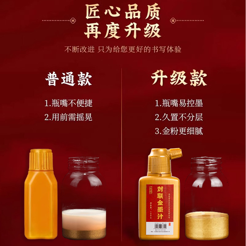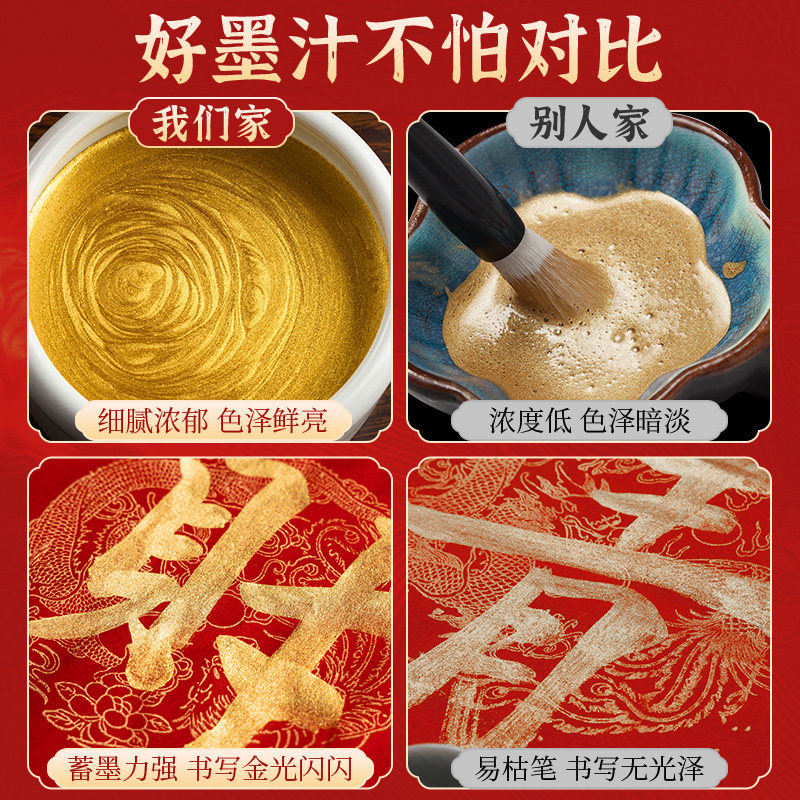 御宝阁金色墨汁毛笔墨水学生用写对联纸书法专用快干金粉墨液国画大瓶装书画写春联练习金粉金墨速干防水小瓶