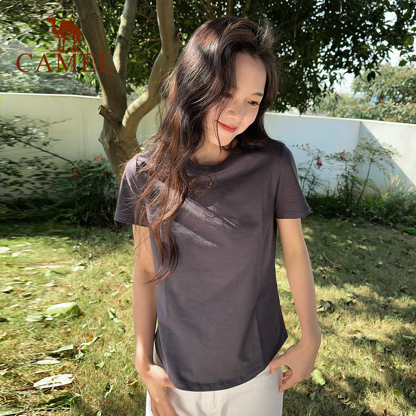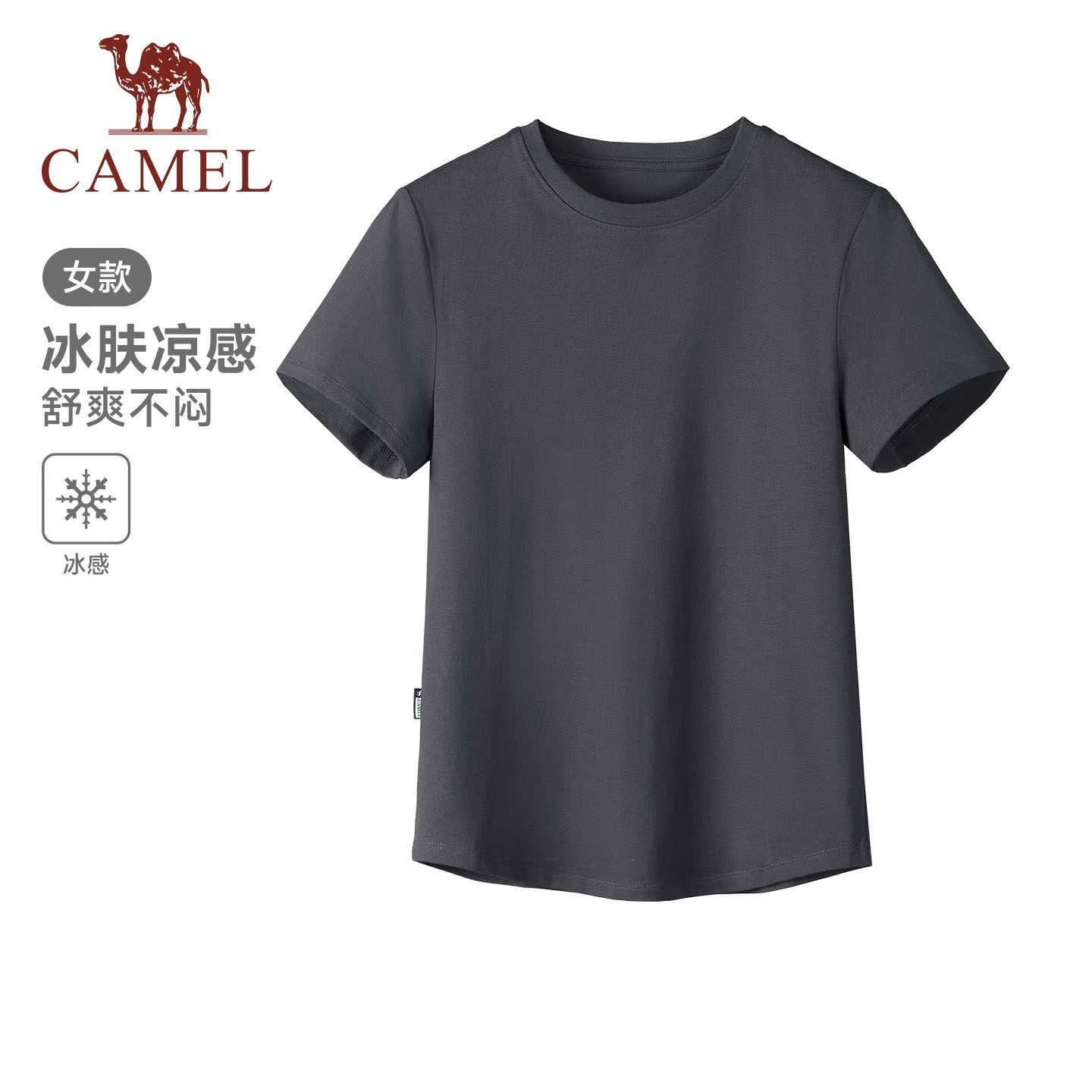 骆驼正肩T短款T恤女2026春夏季新款圆领打底修身显瘦白色短袖上衣