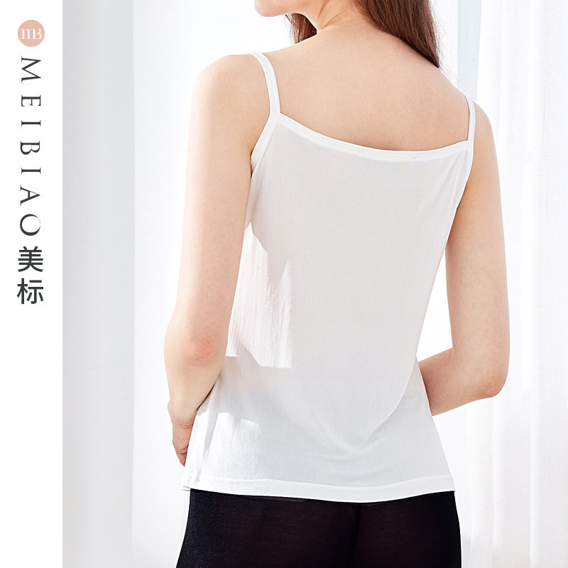 半练纽扣带胸垫夏季背心白色吊带女外穿内搭打底上衣免穿内衣