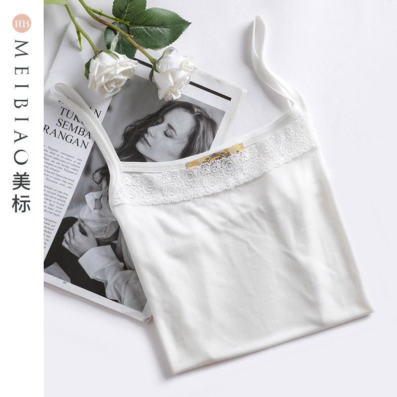 半练白色蕾丝吊带背心女新款带胸垫打底内搭免穿文胸美背上衣外穿