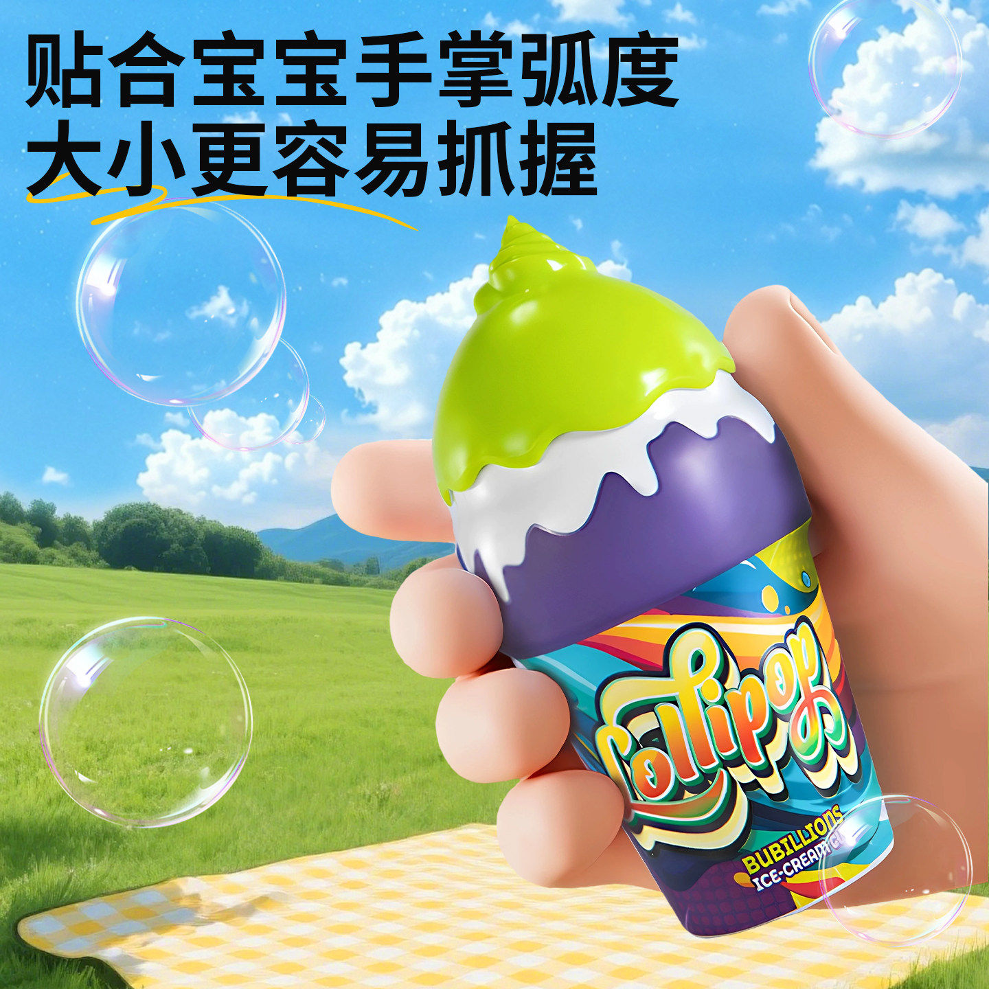 宝宝不洒液冰淇淋泡泡瓶倒置不撒泡泡水儿童手持户外吹泡泡玩具棒