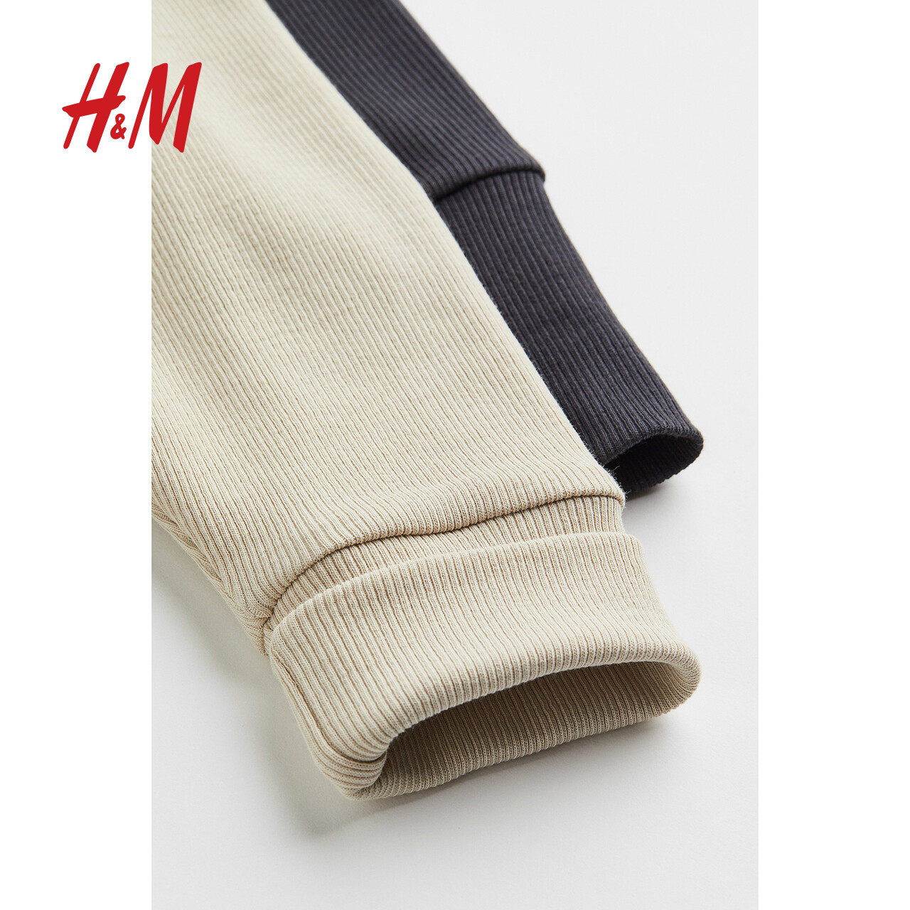 HM童装女婴裤子2条装罗纹可调式可爱休闲柔软长裤打底裤1107148