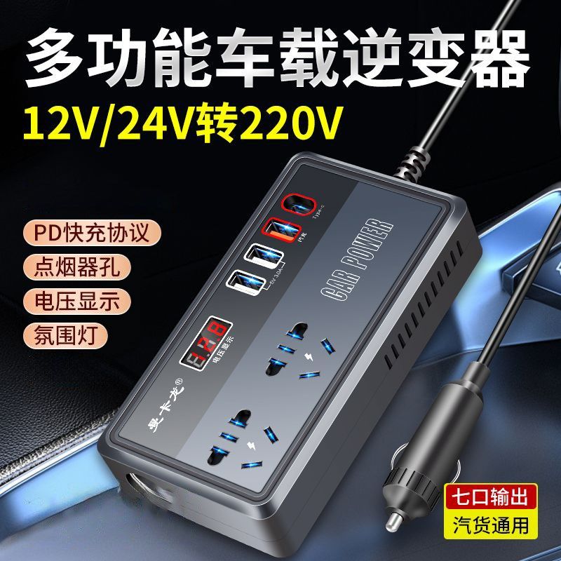 车载逆变器12V24V通用转220V大功率智能汽车逆变转换器手机充电器