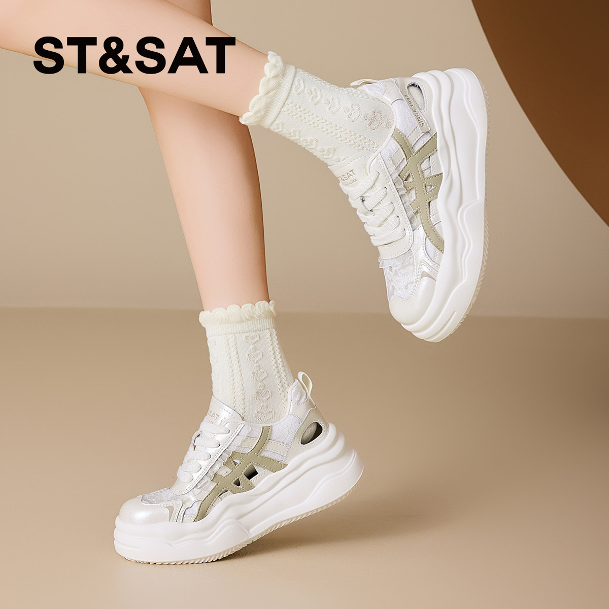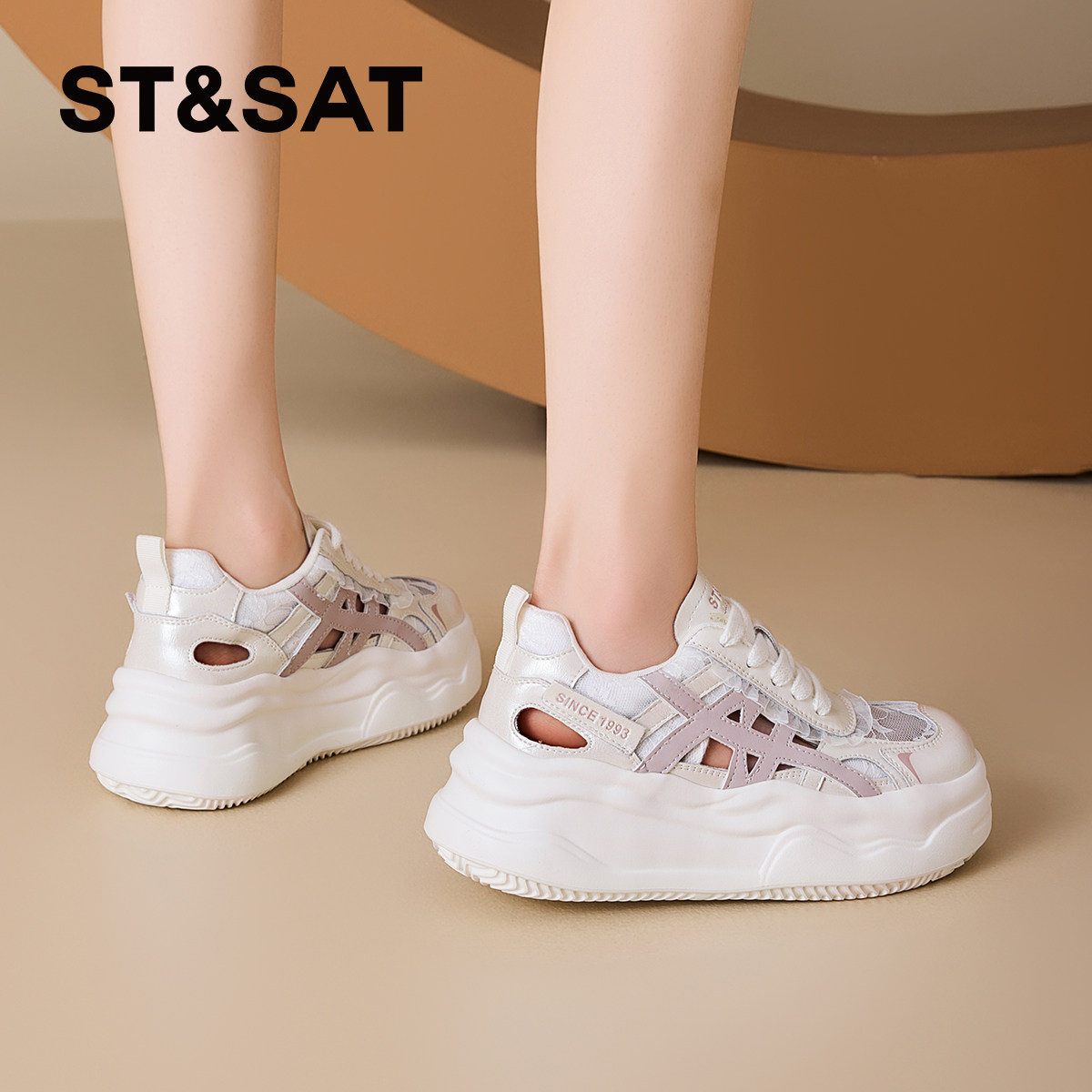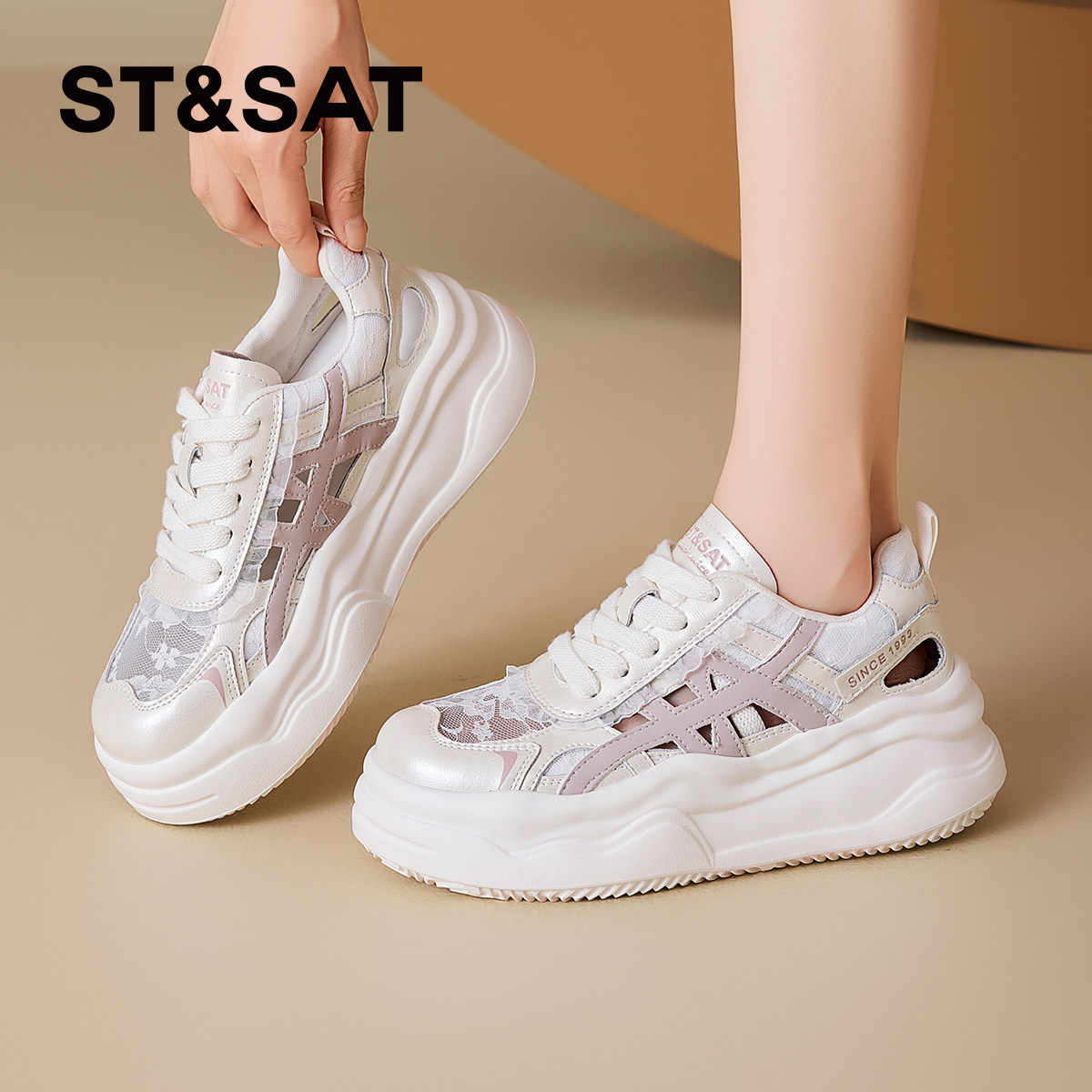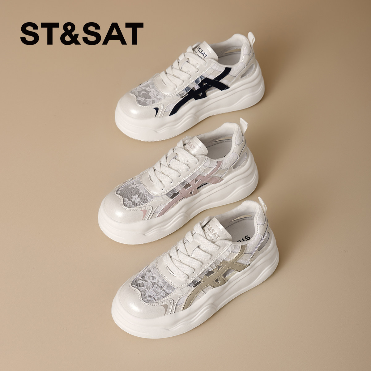St&Sat/星期六网面透气欧若风休闲鞋2025夏季新款流行厚底板鞋女