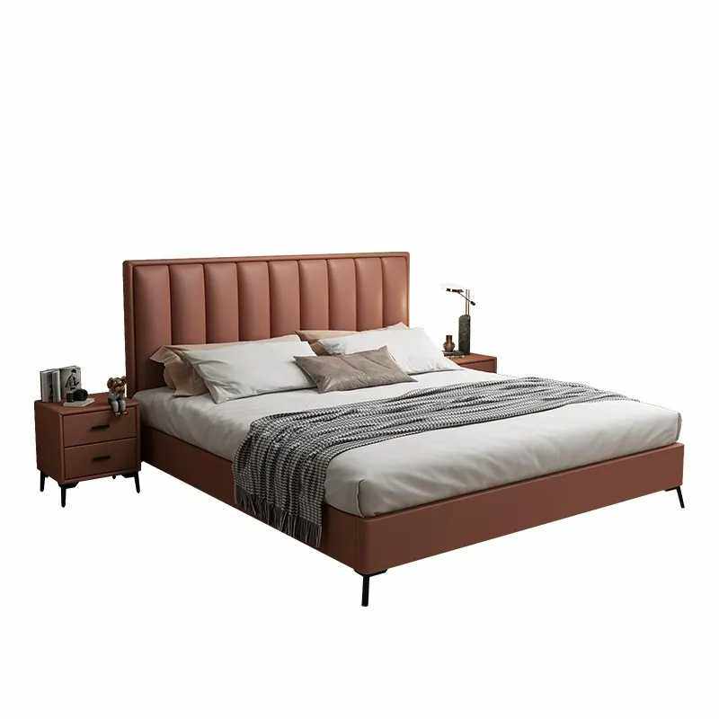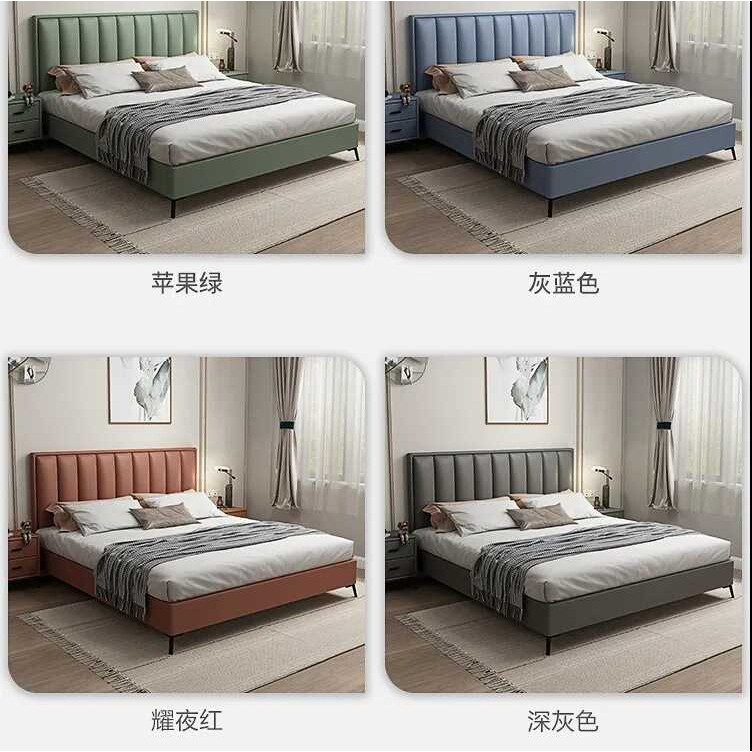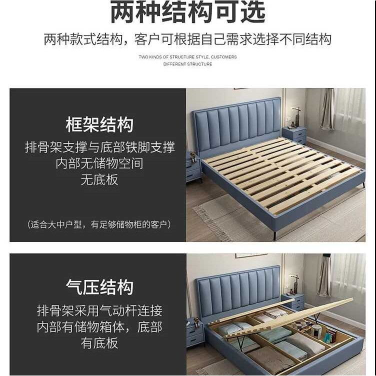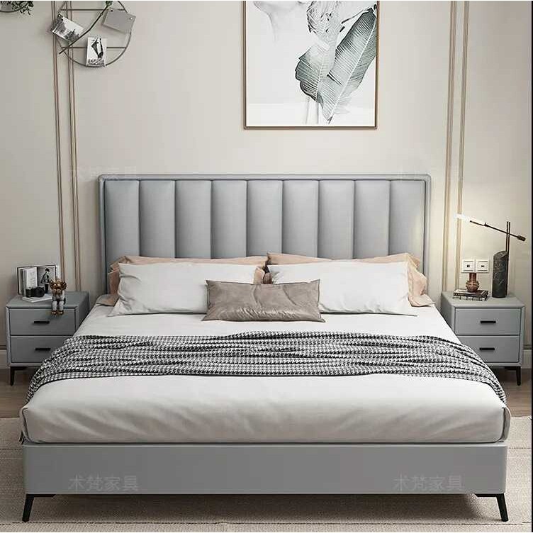 现代简约主卧意式真皮双人床北欧实木极简软包小户型轻奢皮艺床