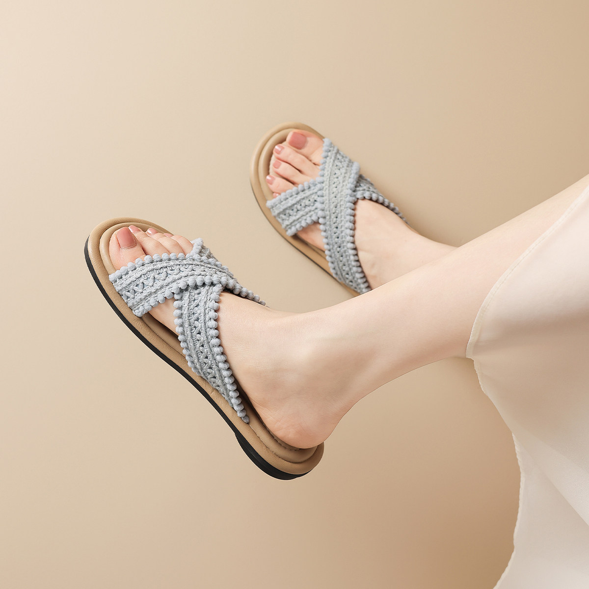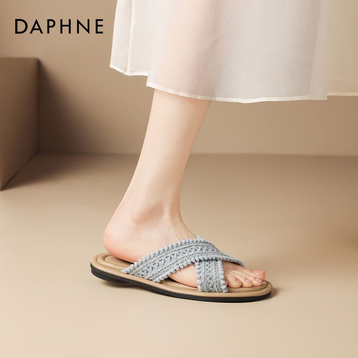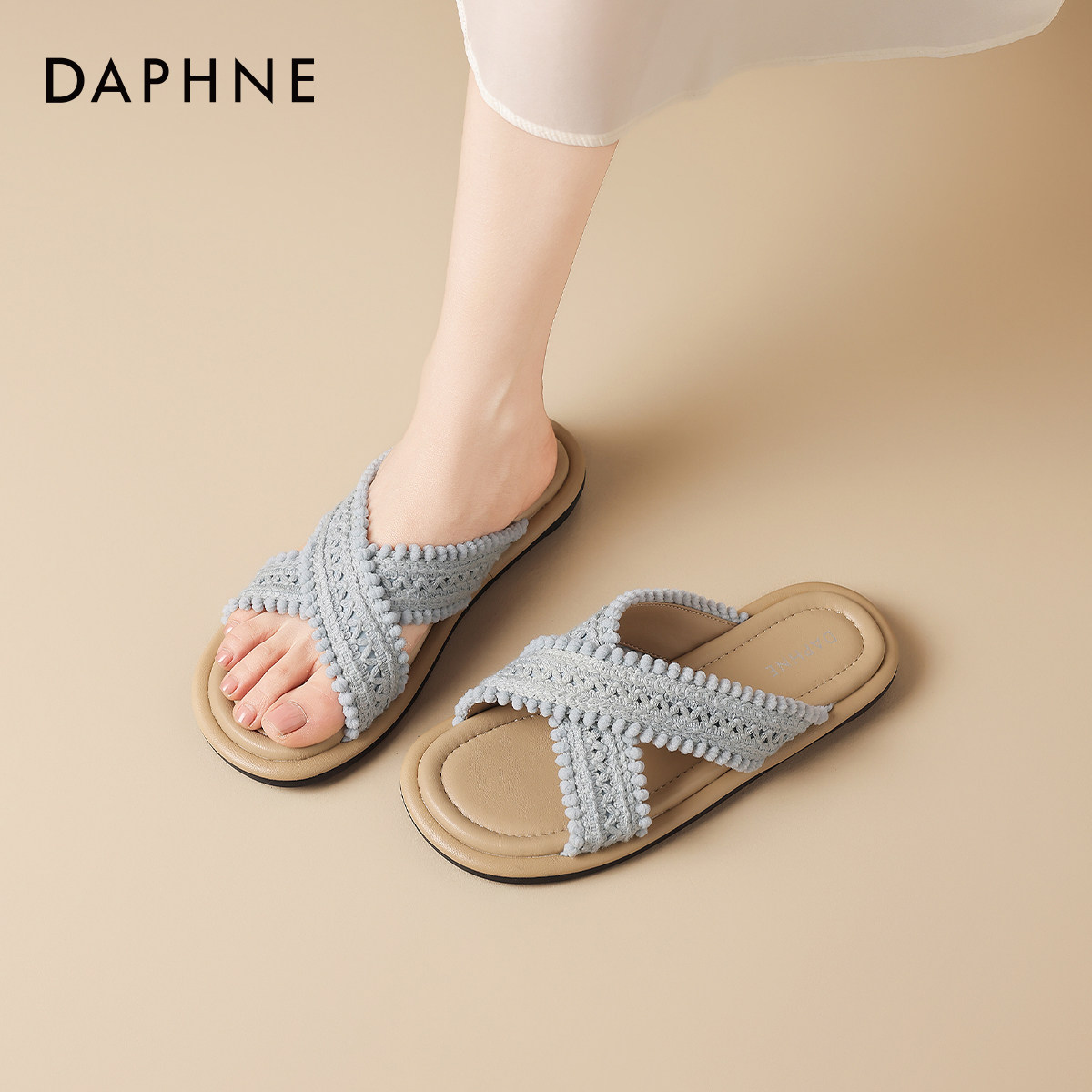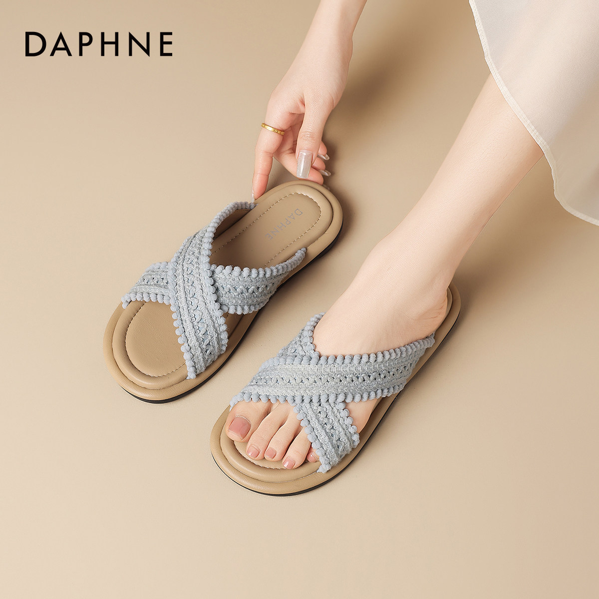 达芙妮外穿拖鞋女款波西米亚2026新款夏季编织平底鞋拖软底凉拖鞋